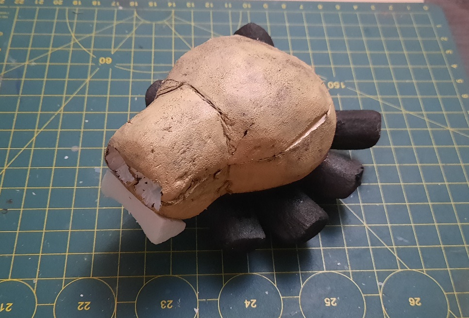 Сделал часть конечностей под названием вертлуг. И боюшко. На качество особо не обращаю внимание так как все будет покрыто волосками. Пока выбор остановился на сантехническом льне. Пробовали приложить натуральный мех - слишком пушисто и не естественно выглядит