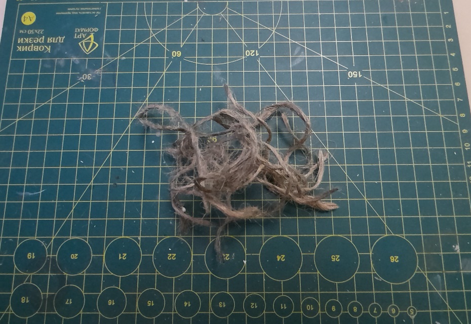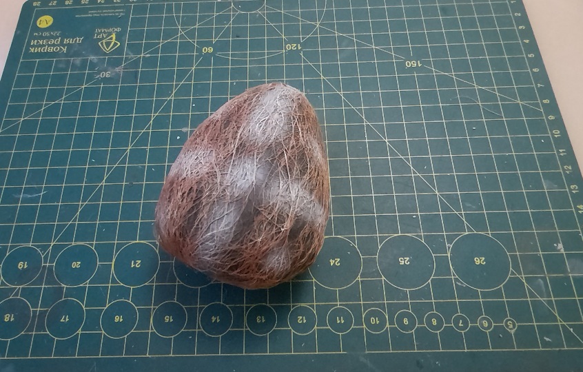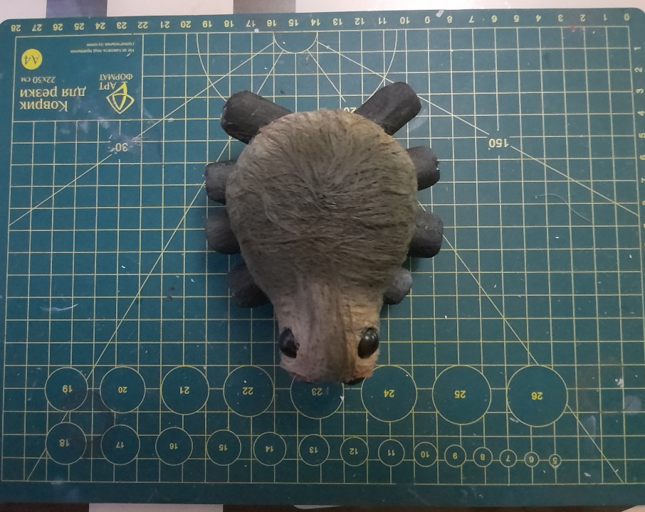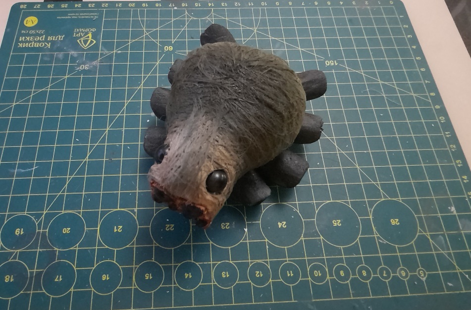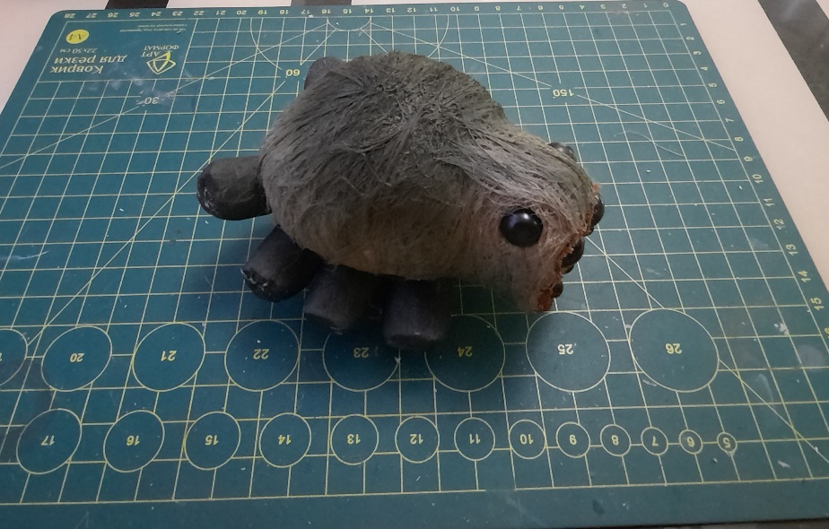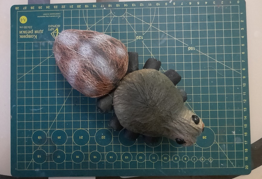 С помощью ПВА наклеил распушенную верёвку. Установил глаза. Это бусы разного размера.Покрасил с аэра головогрудь.