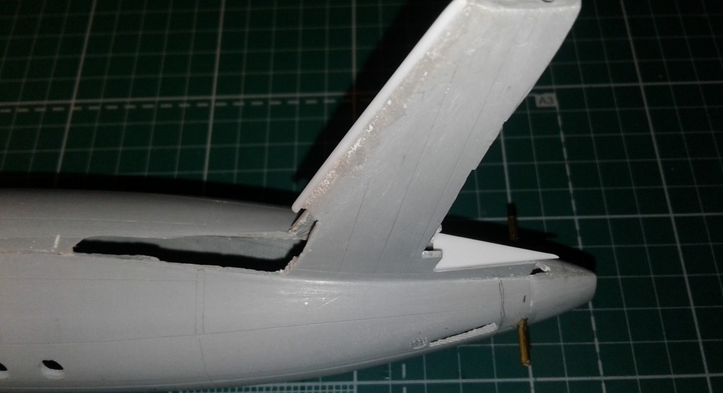 С помощью трубок и листового пластика ZIP переделаны кромки оперения, киля и закрылки. Удалено всё лишнее. На фото видно старое и новое.