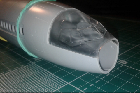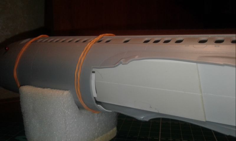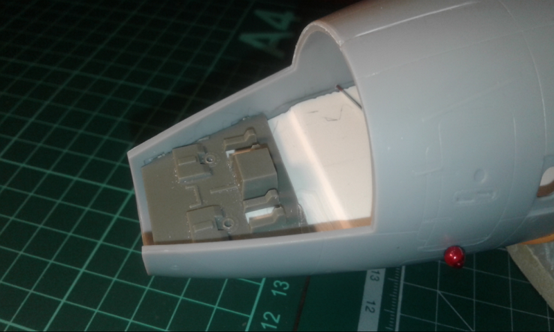 Начал с интерьера. Впереди пластик толщиной 4мм. от центра масс 1,5 мм. ZIP. Рассчитываю на нормальную развесовку модели после присоединения хвостовой сборки.