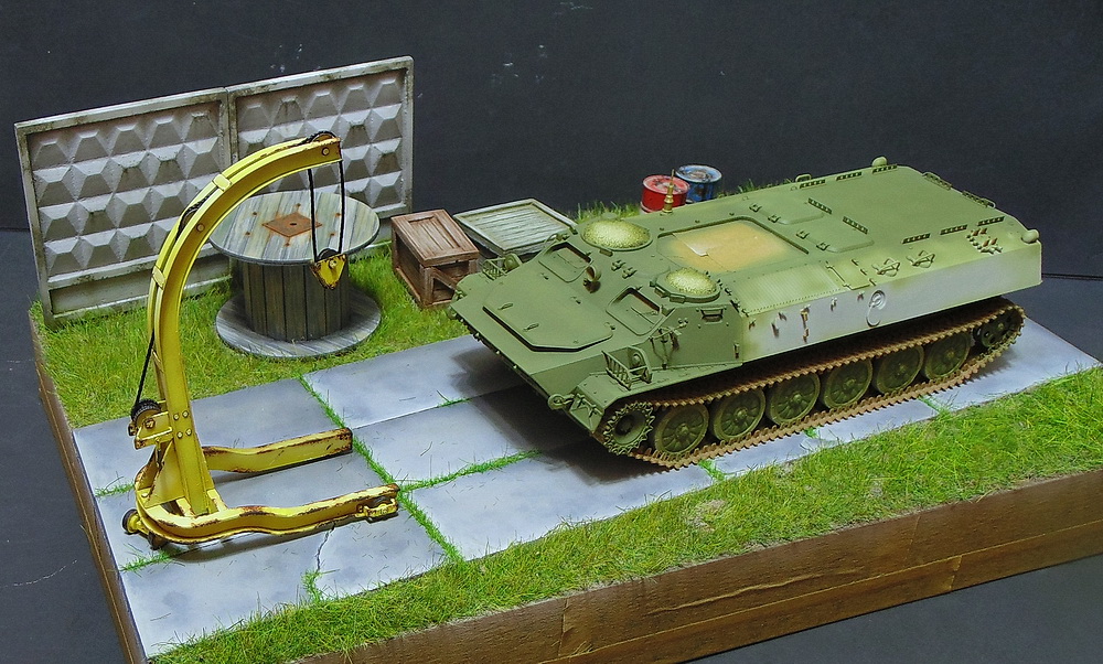 Взялся за небольшую диорамку . Планирую сделать военный тягач МТ - ЛБ на ремонте . За основу взять Трамповский набор , по машине чистая изкоробка , за исключением антенны и пулемета .