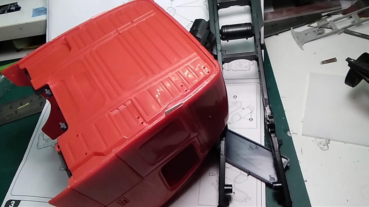 Да и кабина до́ставила удавольствий. Пришлось клеить в натяг, и делать вставки.