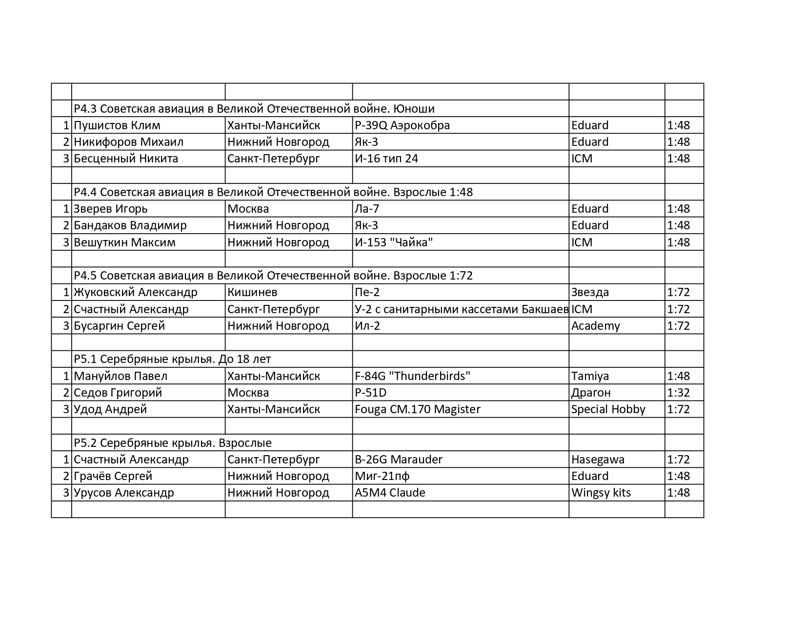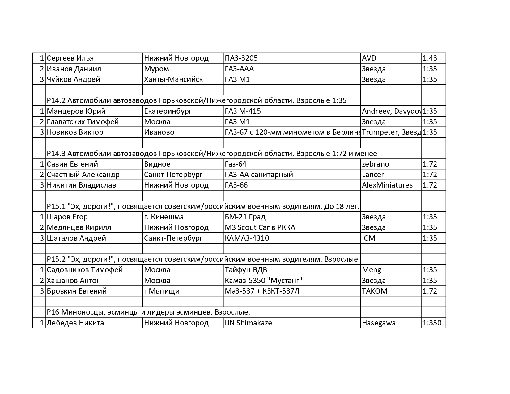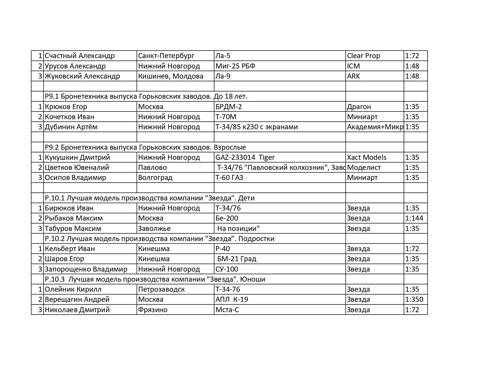 У взрослых было 143 участника, выставивших 622 модели. Конкурс состоялся в 35 номинациях.