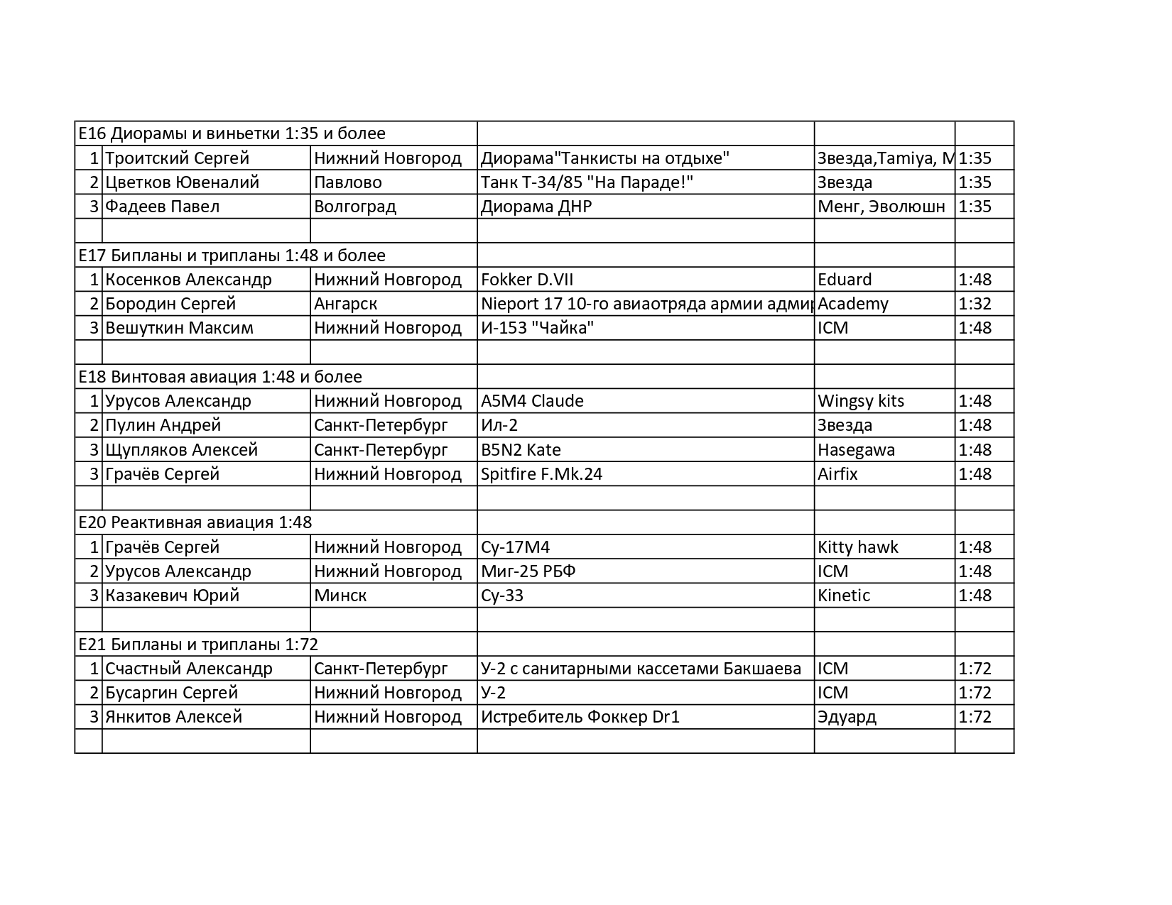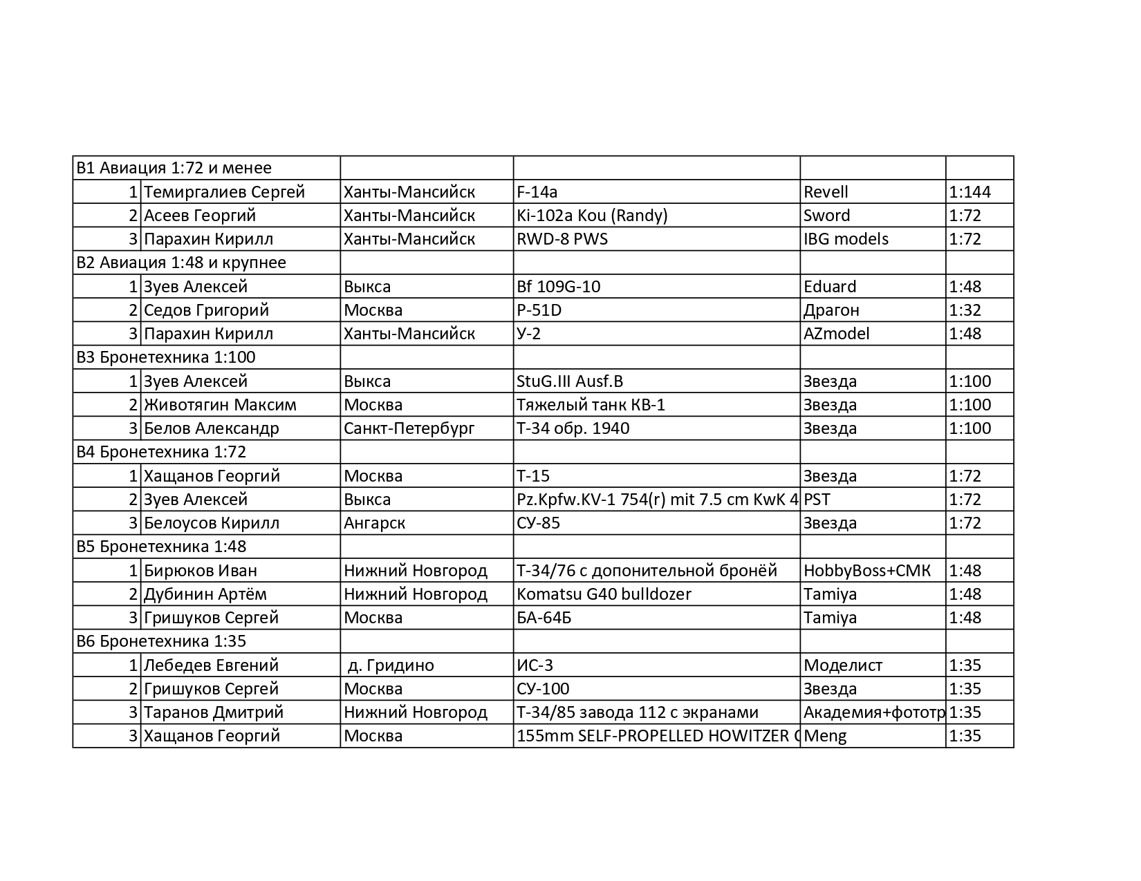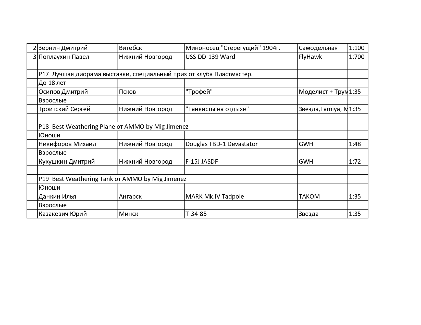 У взрослых было 143 участника, выставивших 622 модели. Конкурс состоялся в 35 номинациях.