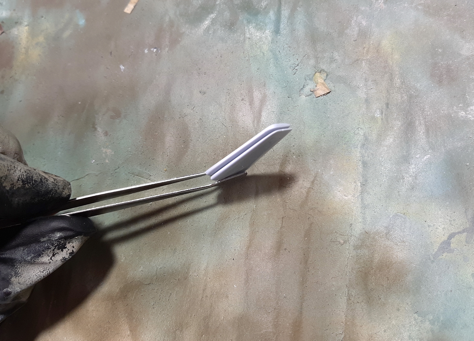 Для разнообразия решил попробовать в работе эмалевые краски. Был пузырёк белого Тесторса. Остальное обычная спиртовая тамия.