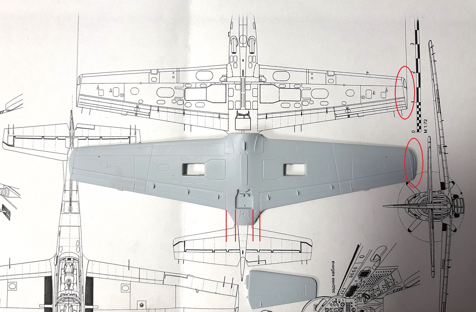 По геометрии тоже пичалька. Размах крыла миллиметра на 4-5 больше положенного, плюс увеличенный вылет крыла на заднем стыке к фюзеляжу.