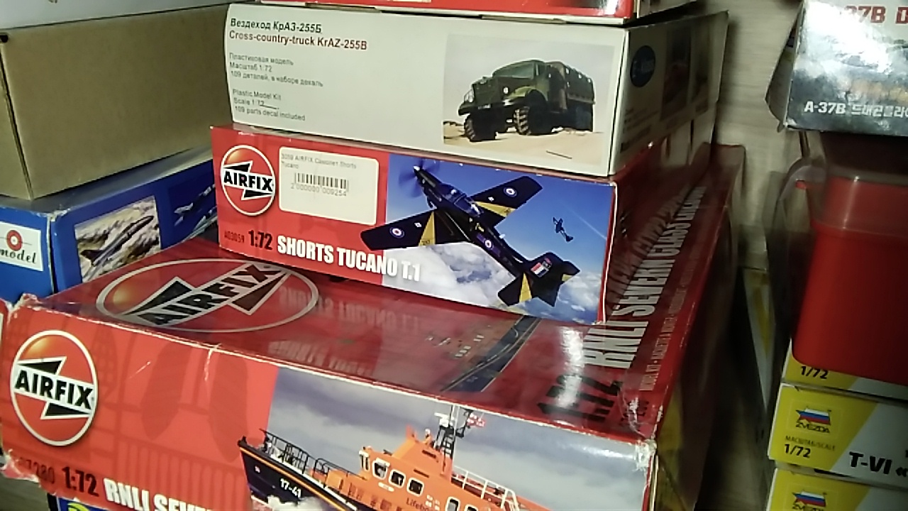 Естественно 25-30 лет назад ни о какой модели этого самолёта мечтать не приходилось. Сейчас другое дело. Естественно появилась идея-фикс его заиметь. Узнав что в 72-м масштабе есть модель от Premiere и Airfix начал копать и быстро убедился что с первым производителем лучше дела не иметь. А вот фотообзоры Аирфикса выглядели убедительно и неплохо. В общем с рук удалось найти заветную коробочку. Потом от жадности заимел ещё одну такую-же.