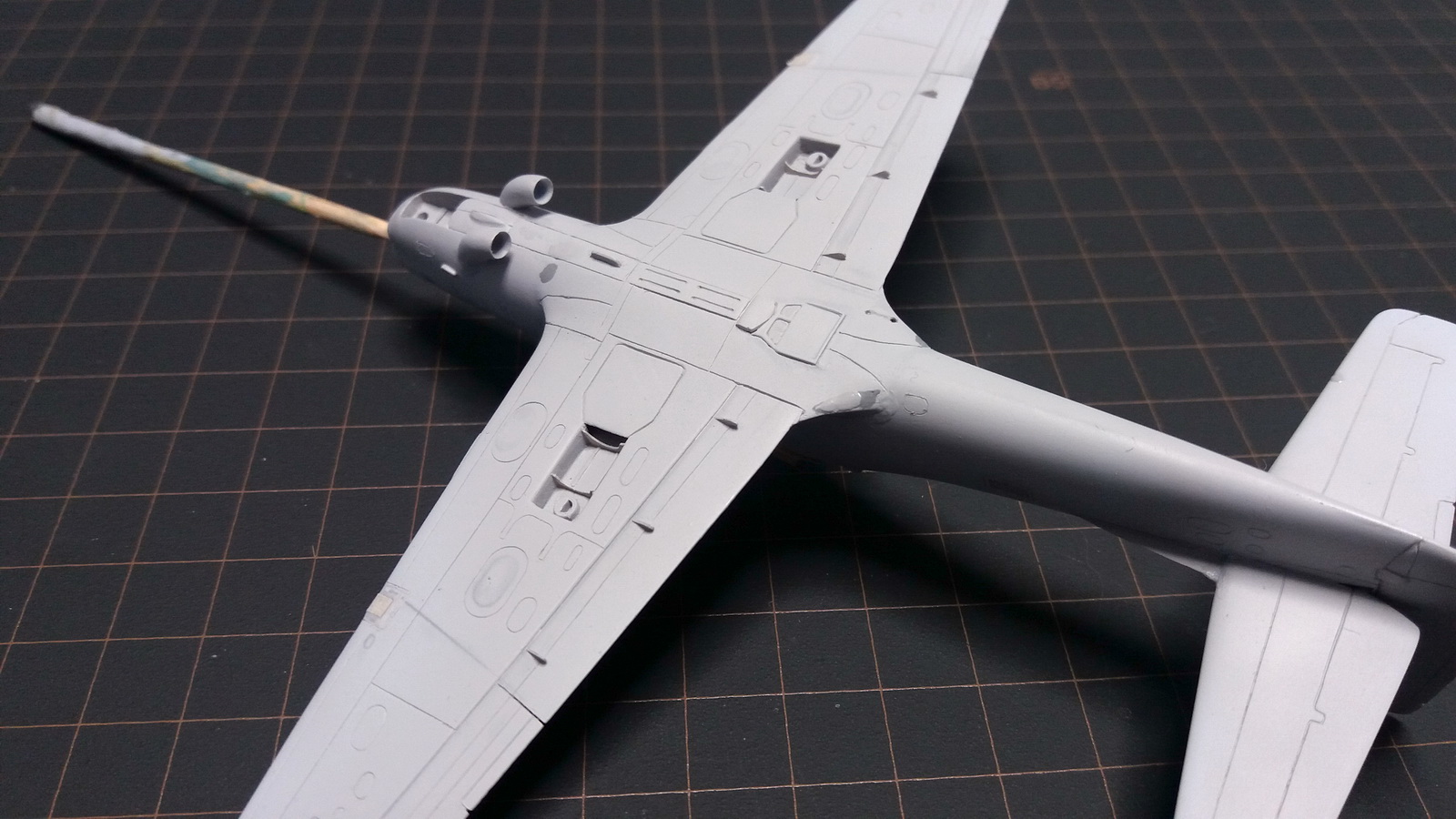 На данный момент переделана расшивка где можно до сборки и шпаклёвки. Для соблюдения симметрии остальное будет резаться после склеивания половинок. Могу сказать что у модели по сравннеию с оригиналом совпадение по лючкам и швам около 20-30%. Всю расшивку что указана на чертежах наосить не стал т.к. на настоящем самолёте её вообще почти не видно.