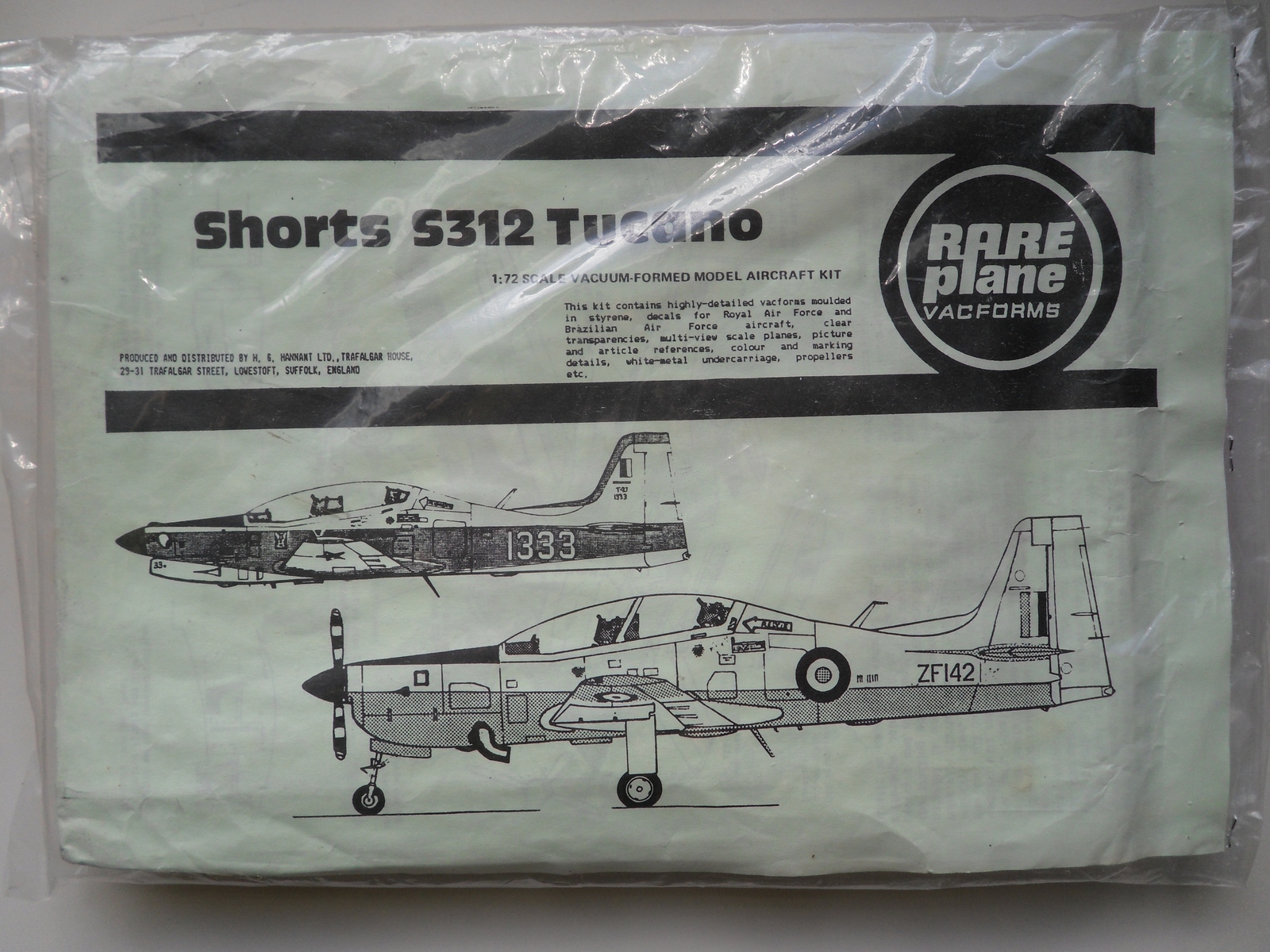 Про сам самолёт ничего писать не буду. Кто знает тот знает, кто нет но интересуется легко сам найдёт инфу. Скажу только что Airfix выпускает не бразильца Embraer emb.312 Tucano, а английскую лицензионную версию Short Tucano T.1. Отличия в носовой части (заменён двигатель) винто-моторной группы, начинке кабины и в мелких деталях экстерьера.