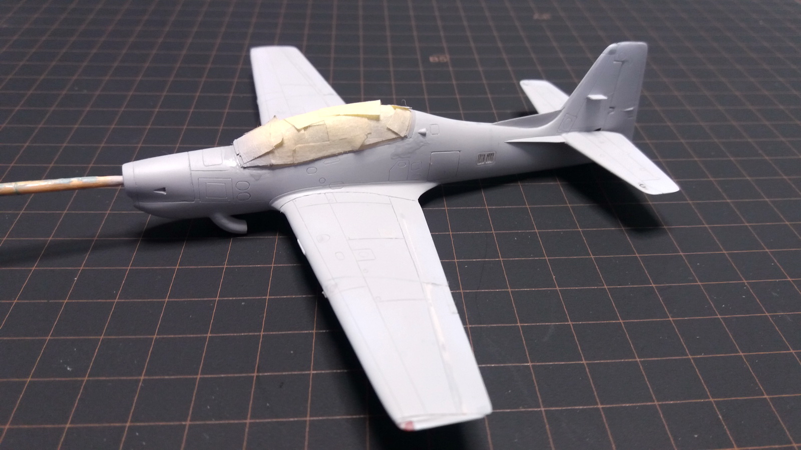 2. Вставил смоляную кабину от СМК предварительно уменьшив толщину пластиковых стенок фюзеляжа. Влезла очень хорошо, небольшие щели замазал акриловой шпаклёвкой.