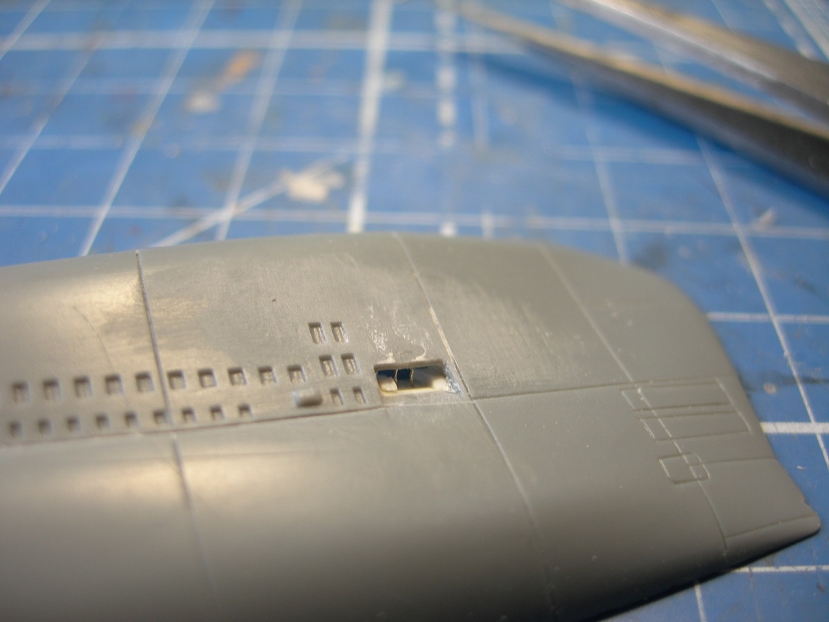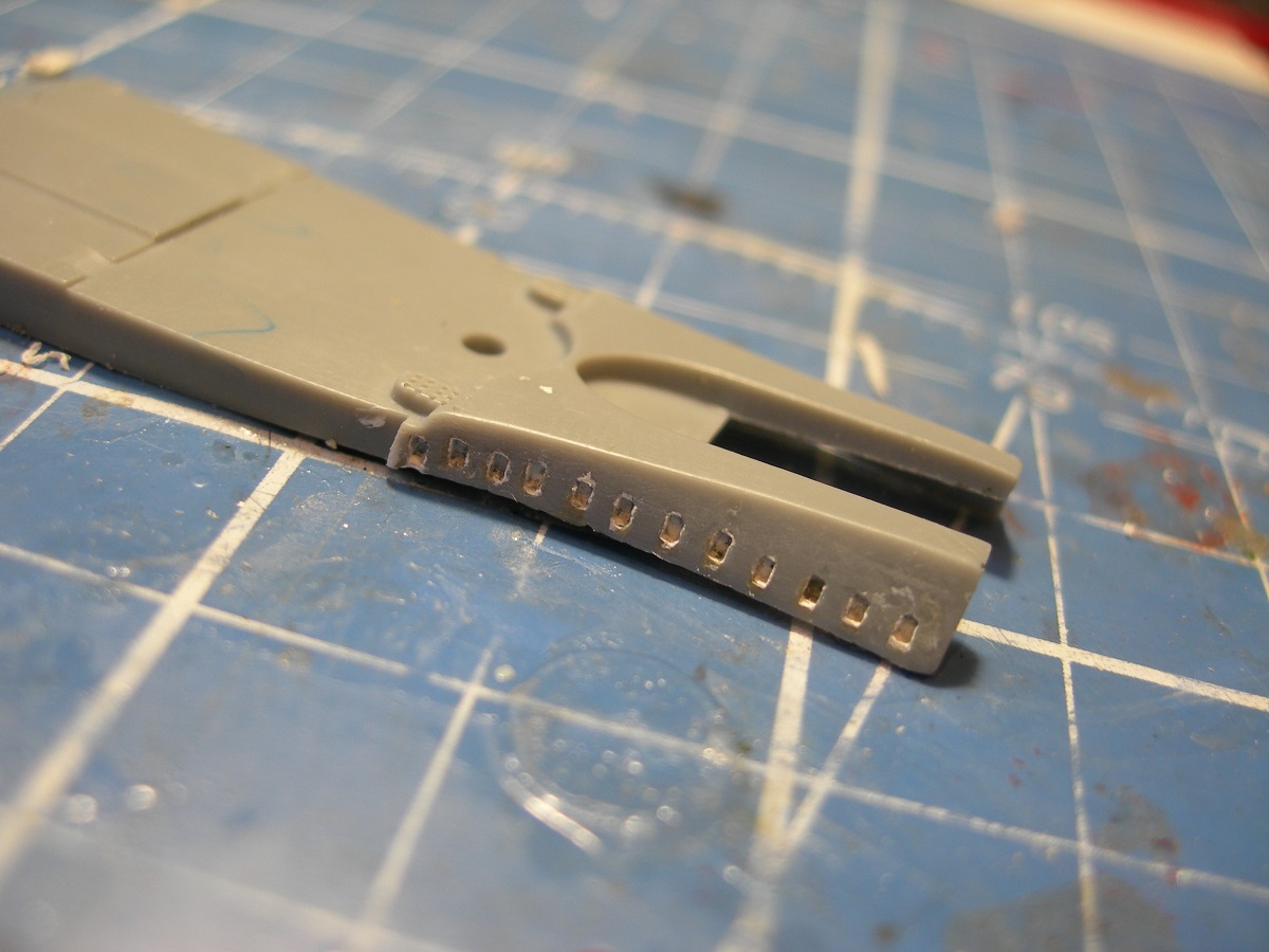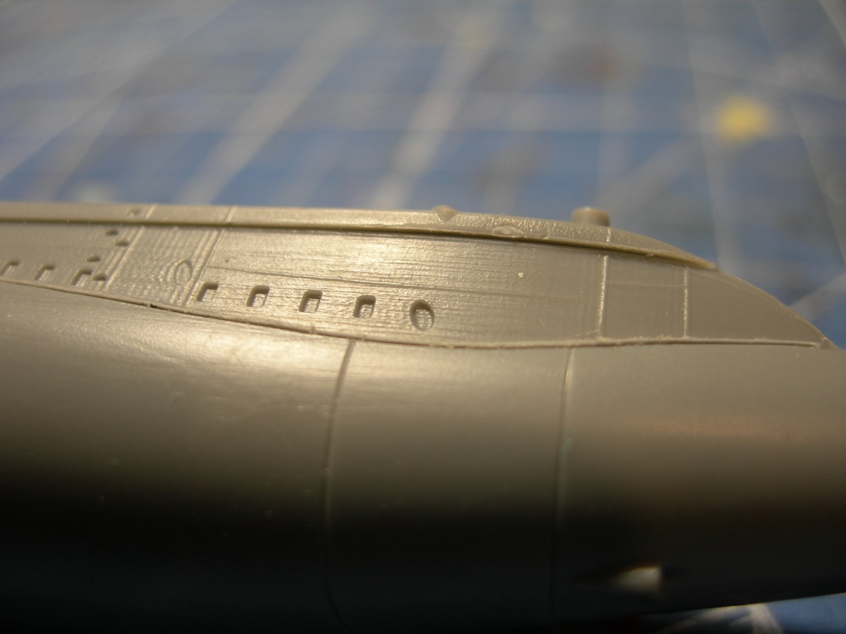 Ну настала пора переходить к "железу". Первый сюрприз- на корпусе отсутствуют кингстонные решетки, точнее "окна", которые их имитируют. К слову, на смоляной модели от ".Blue Rich Models" они есть.