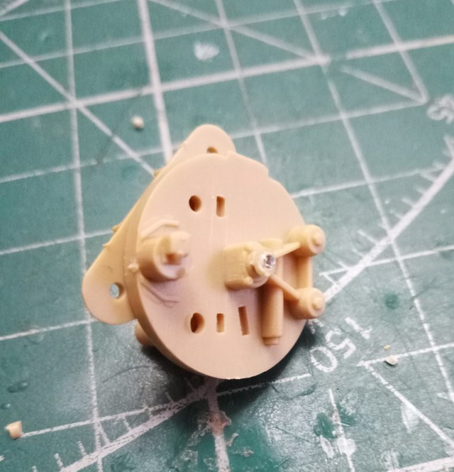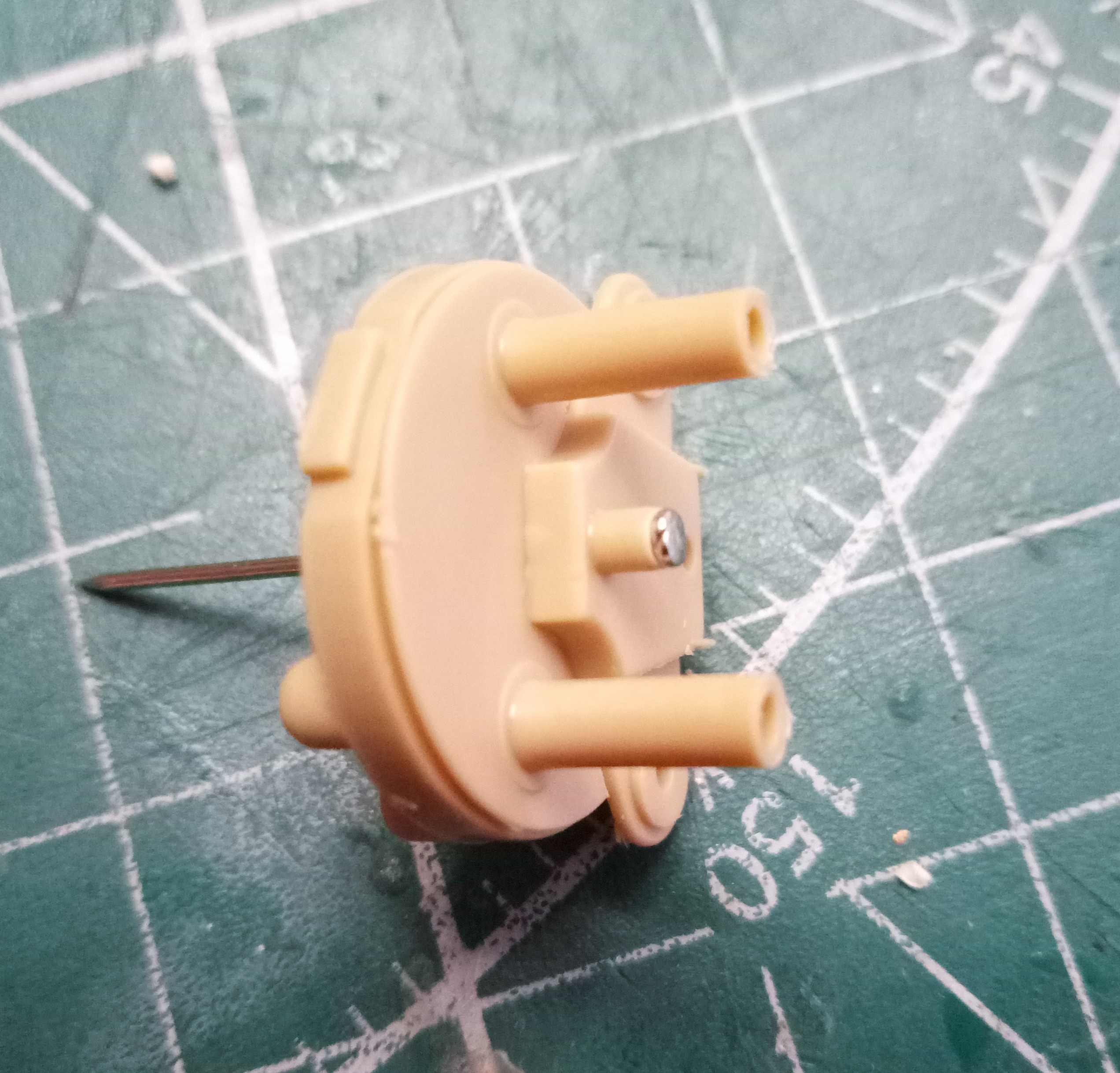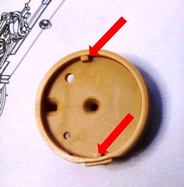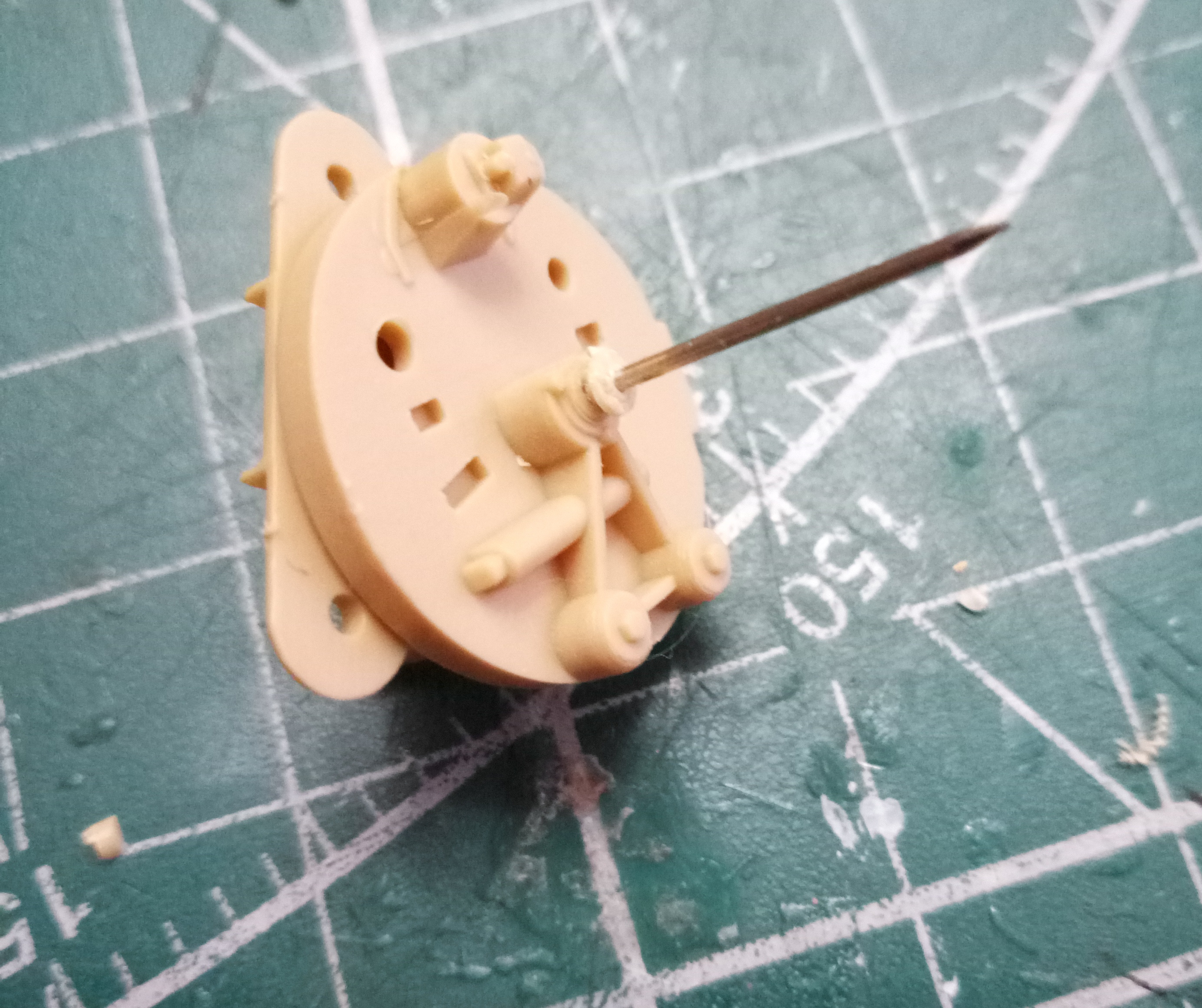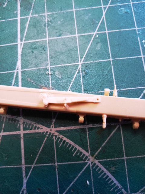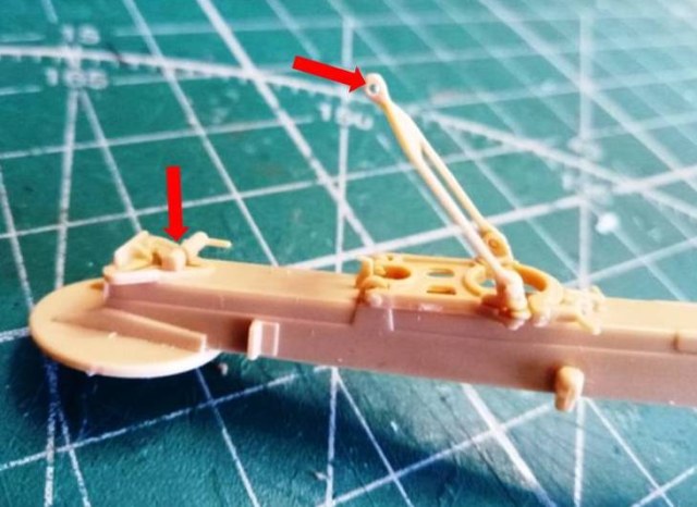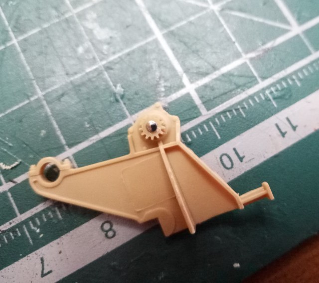 В левой боковине В31 срезал ось шестерни подъемного механизма, с другой стороны в патрубок вклеил кусочек литника; просверлил отверстие 0.7 мм.