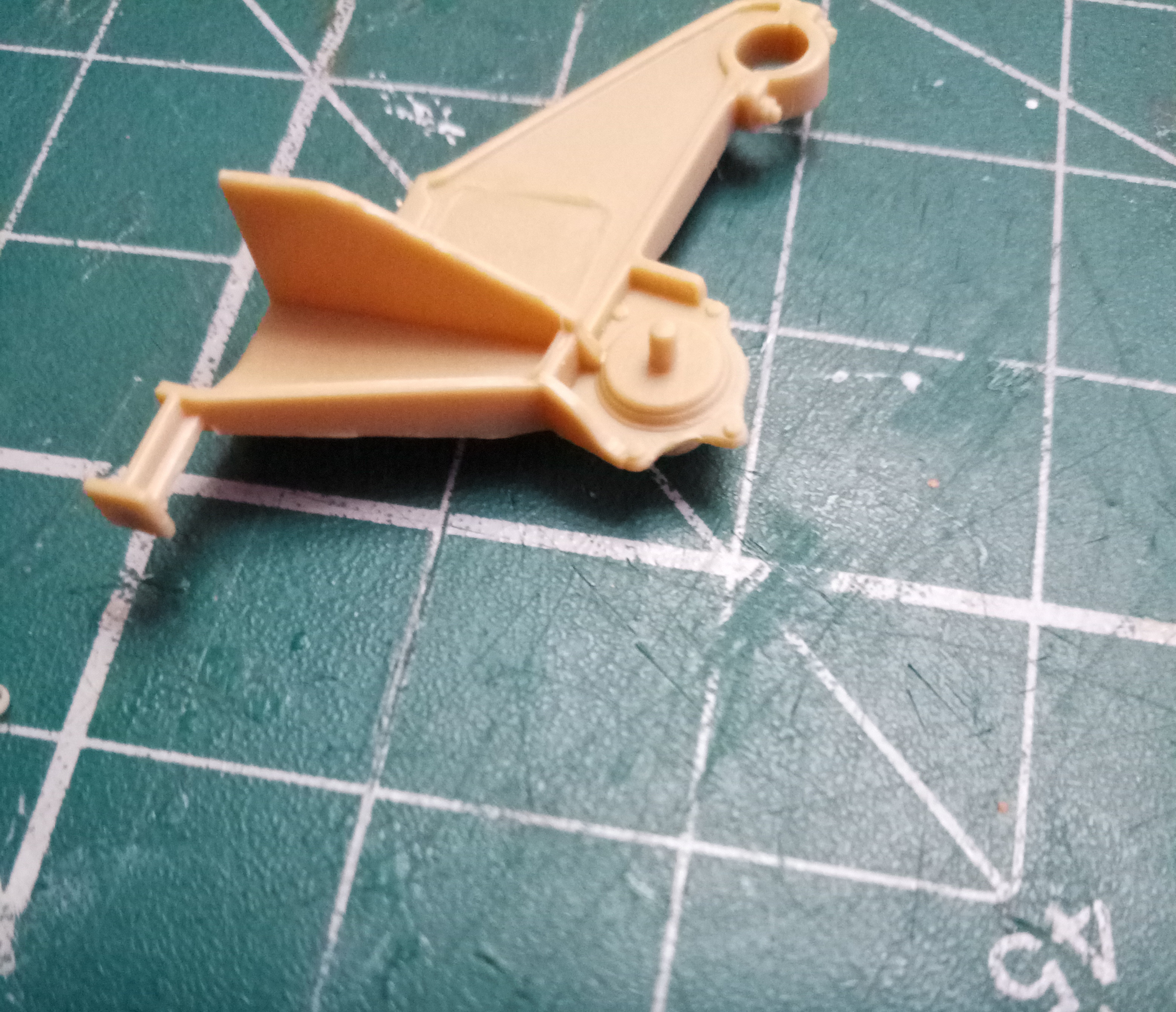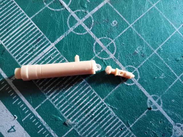 Вот, при таком увеличении разглядел недочищенный шов на цилиндре... Все-таки сдвиг прессформ у трумпетера присутствует... Таким образом, после окончательной сборки шток будет "держаться" за кронштейн, верхняя часть штока сможет отклоняться; цилиндр будет "держаться" за регулятор, который жестко крепится к люльке, его нижняя часть сможет отклоняться; шток перемещается в цилиндре свободно. Задача решена. Пока в теории.