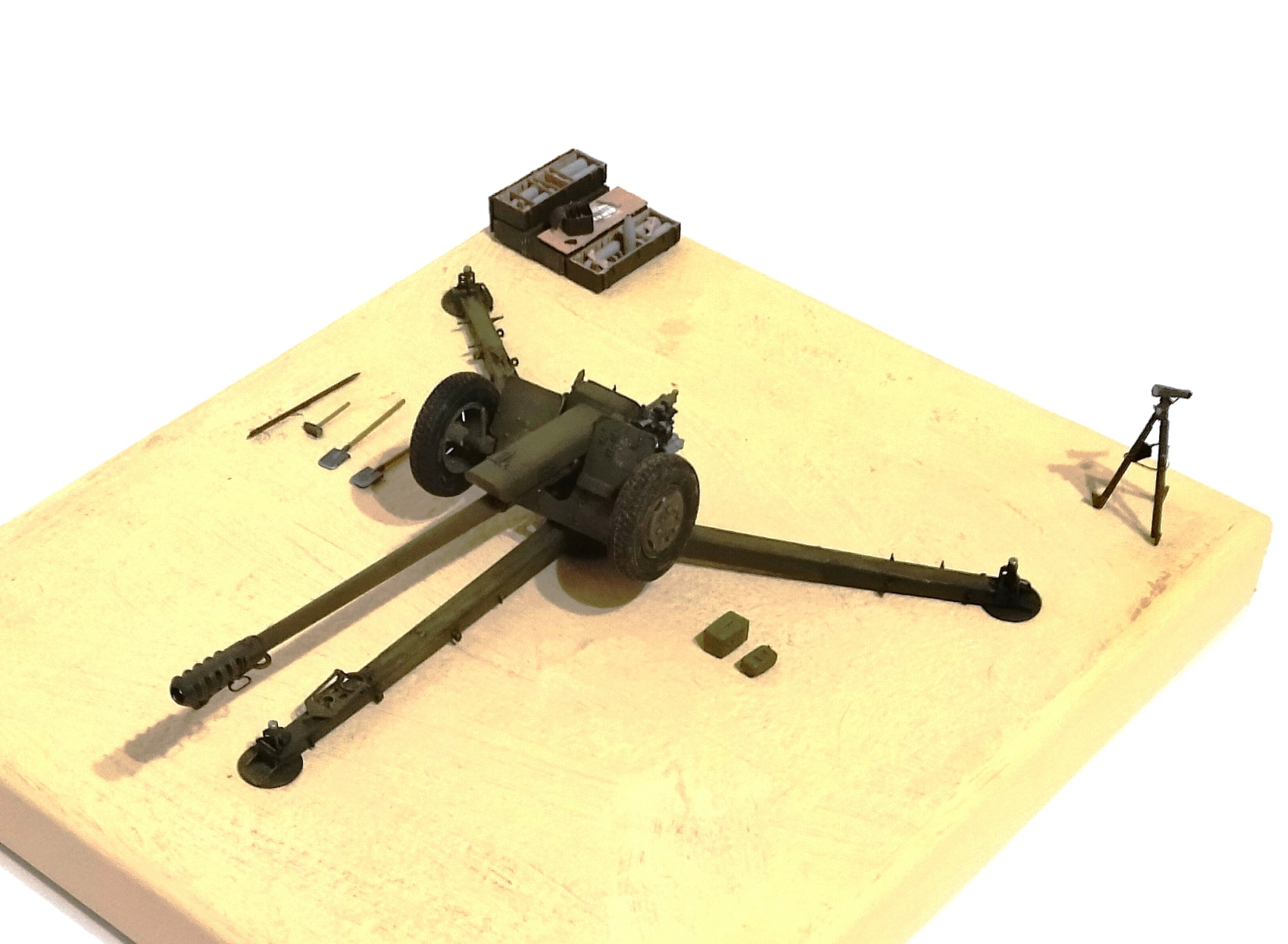 модели ЗИС-3 вместо прицела какая-то кракозябра изображена, тоже пришлось рукожопить. А Трубач ведь делает большое количество моделей артсистем, могли бы уже и озаботиться, контора все-таки довольно солидная...