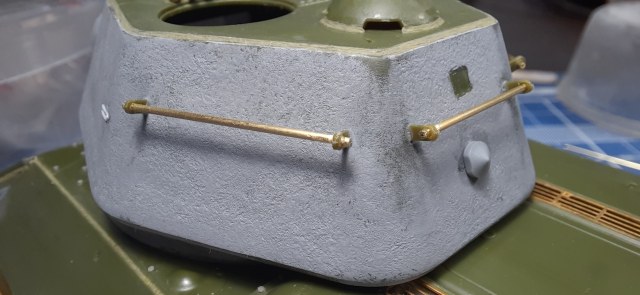 Кировский завод получал готовые корпуса с Уралмашзавода и при установке своих кронштейнов для дополнительных баков снимал правый задний поручень и вместо него устанавливал свой (проходящий через отверстия в кронштейнах баков), при этом старые кронштейны поручня с корпуса не срубались (см. чертеж).