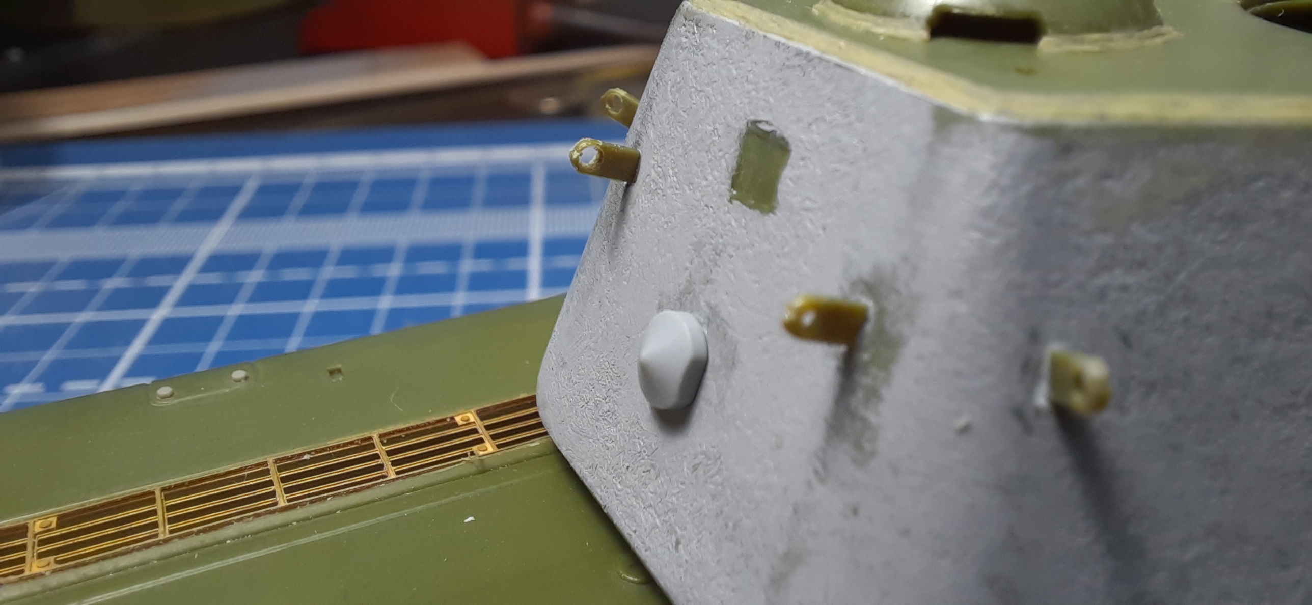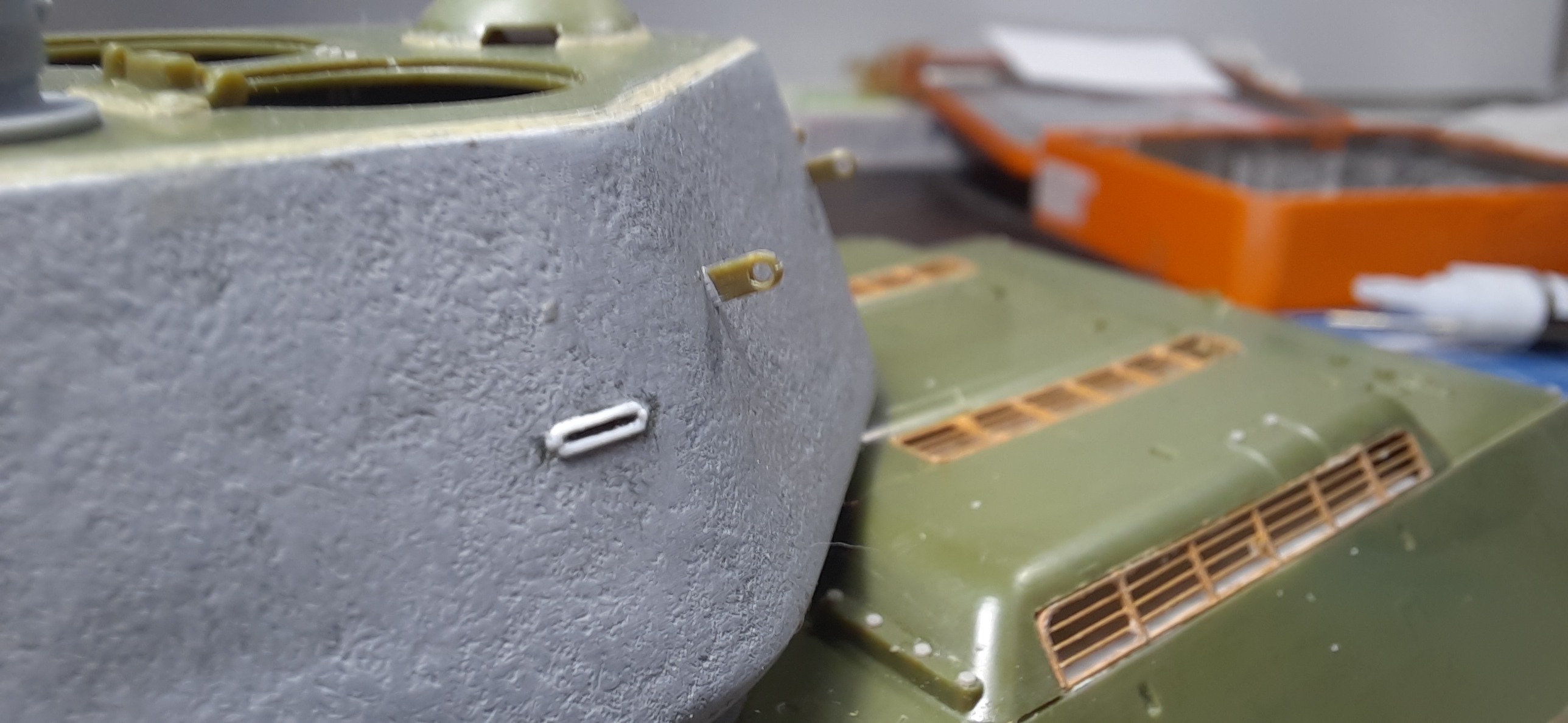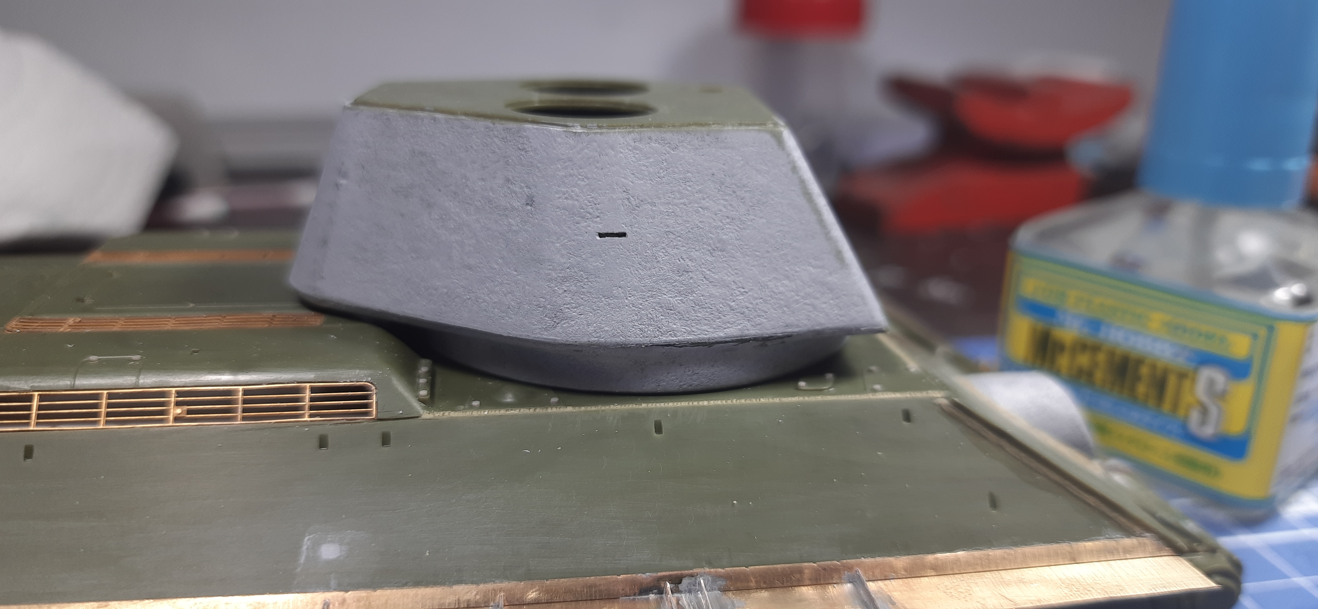 Доброго всем дня!!!!Я тут, я не пропал) Пилил неспешно, но вроде допилил. Зап траки и фару после окраса вклею. Постарался сделать модель максимально разборную для удобства в окраске. Люки, траки, катки, ведущее, маска с орудием, ящик зип съёмные. Пока мою и сушу модель перед грунтом, есть время для исправлений, если таковые потребуются.