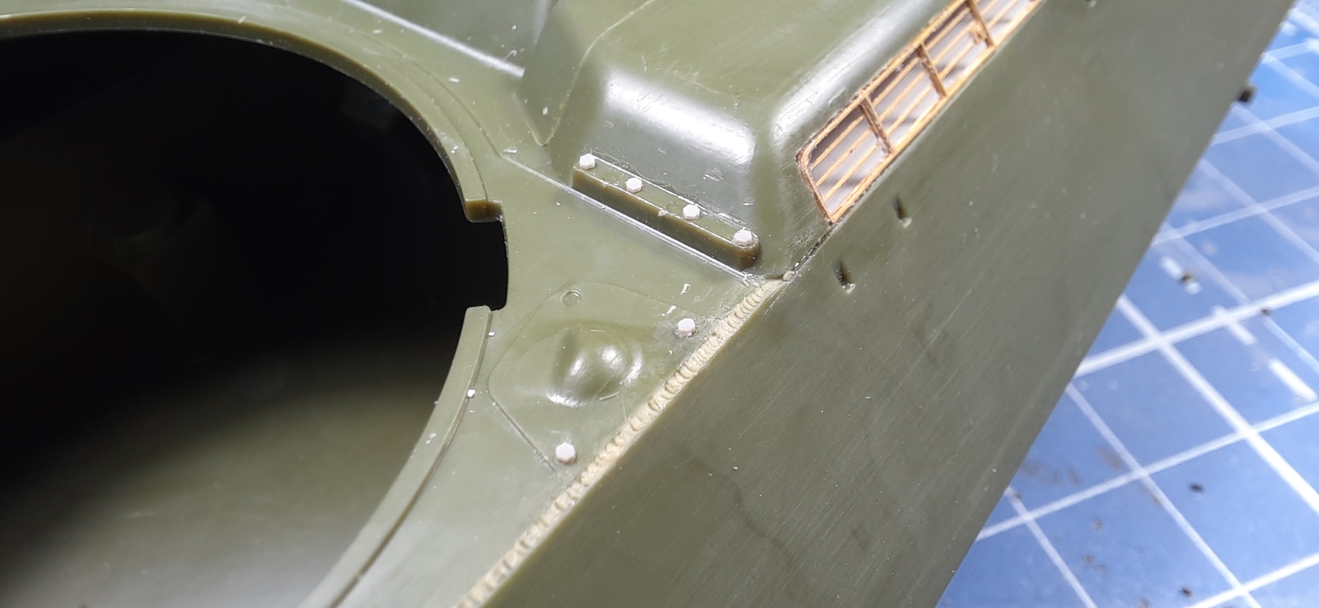 написал:Щель на углу можно проклеить или пропаять, по поводу петель от поручней вопрос, должны они там оставаться или нет.