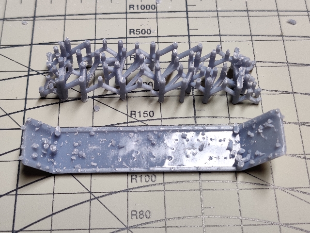 И так..)) Очистил крупные детали от поддержек. Скажу что проще, чем у "классической" смолы. Нету толстых пеньков. Тут нужны только кусачки, острый нож и надфиль. На мой взгляд минус такой технологии эта поверхность после удаления поддержек. Поддержка оставляет маленький кратер. Но может это и я делаю что-то не так. И стало понятно почему производитель оставляет деталь в таком состояние.