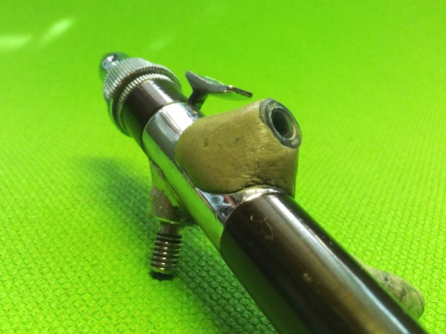 Это и стало ключом к дальнейшей жизни того аэрографа. Лайфхак №1. Воздушный штуцер был надёжно припаян, а вот штуцер для краски модернизирован. За основу была взята игла шприца. Собственно игла была обрезана.