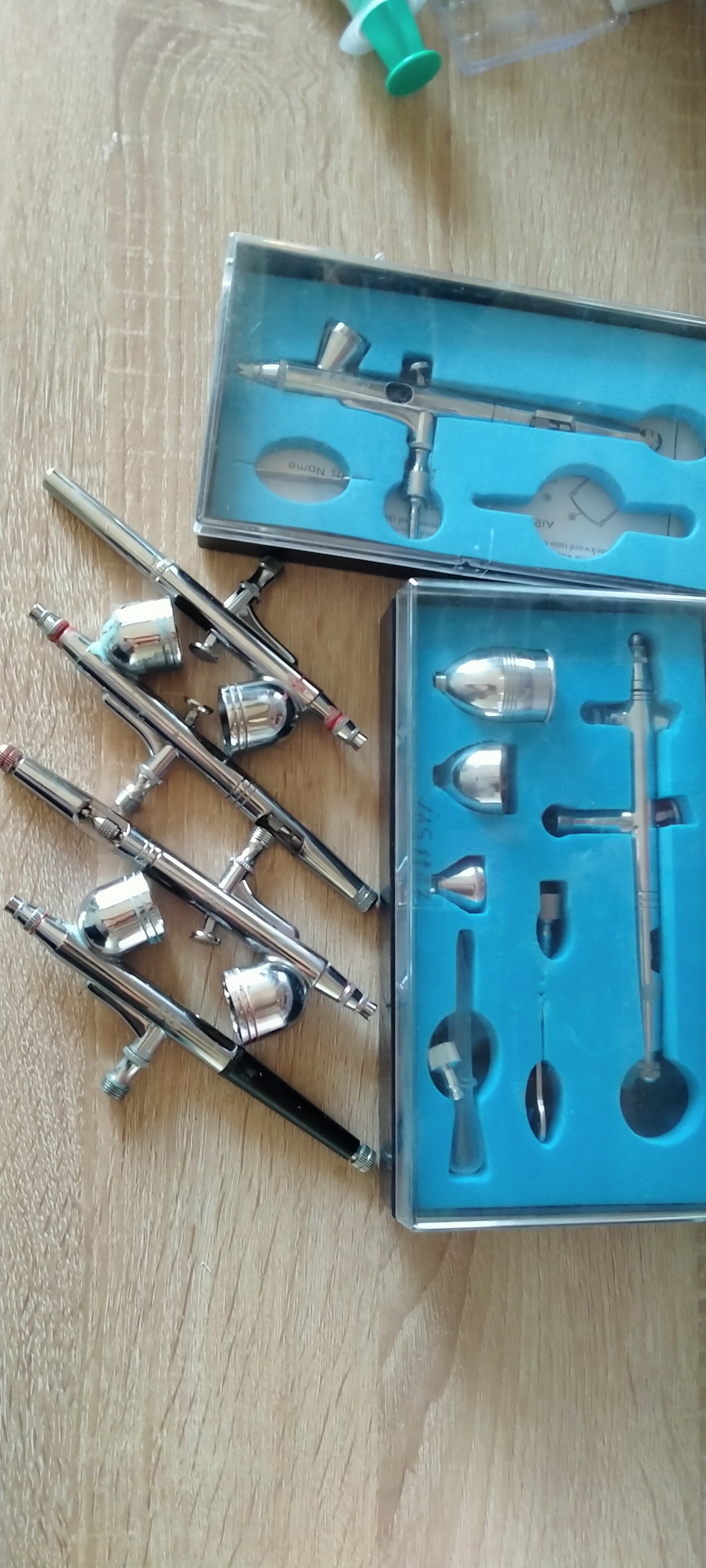 Но сейчас всё по другому и вполне можно себе позволить приобрести 3 аэрографа на все случаи жизни.