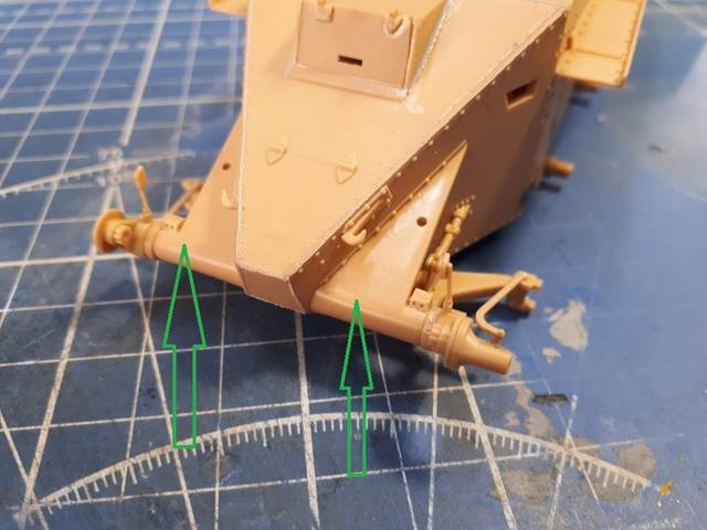 По корпусу у "ХБ" при переделке в БТ-5 надо переболтить борта (или плоские болты, или гайки, смотреть по фото), вырезать окна воздуховодов, спилить возвышение под башней, поменять на носу клепки (у "ХБ" очень маленькие), сделать на носу сварку, продлить наклонный кормовой лист (на котором стоит глушитель), ну и т.д.