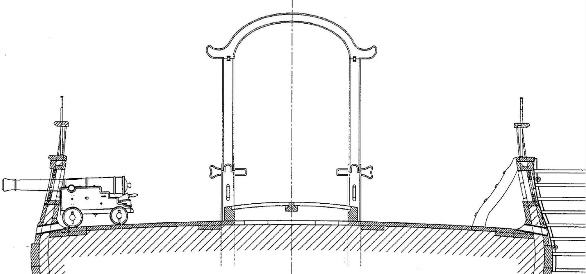 @Вячеслав Строев написал:Пушки малокалиберные (4 фунтовые) с небольшой отдачей и откатом, с коротким брюком. Заряжались через порты. В походном положении, с закрытыми портами, ставили параллельно борту.
