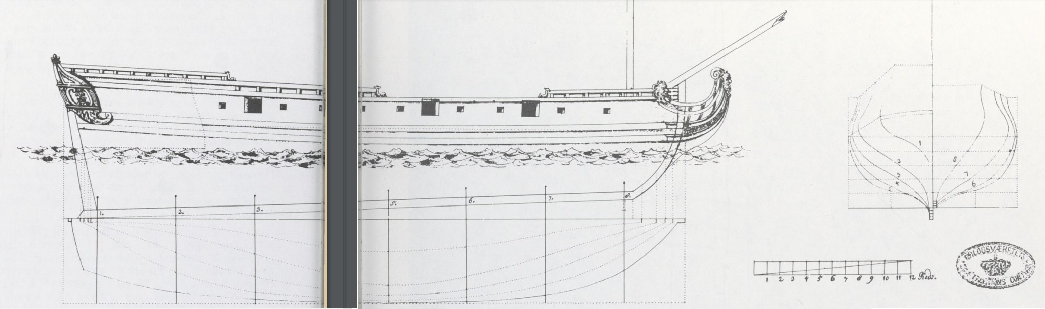 Вот, для примера, тот самый "малый фрегат" Аврора, о котором я говорил чуть выше, чертёж, из которого Леминье высосал целую книжку с чертежами. Это всё, это реально всё, что было найдено в архивах по конструкции данного корабля. Даже художественного изображения не было.