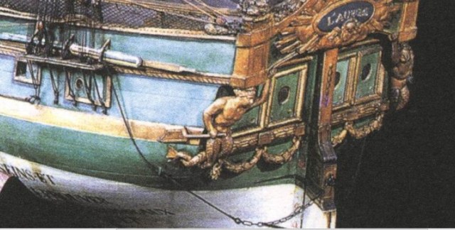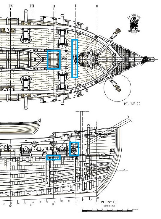 Не могу не отметить, что проблема работы с брашпилем - отмечена тобой совершенно справедливо. Ни одна пушка на чертежах не вызывает такое недоумение, как первое орудие каждого борта. (и что-то мне подсказывает - как было с корветом Аврора этого же Автора), что Жан-Клод именно этот чертёж реально и применил. Будет время, попробую перевести вступление, думаю, эта информашка там проскользнёт.