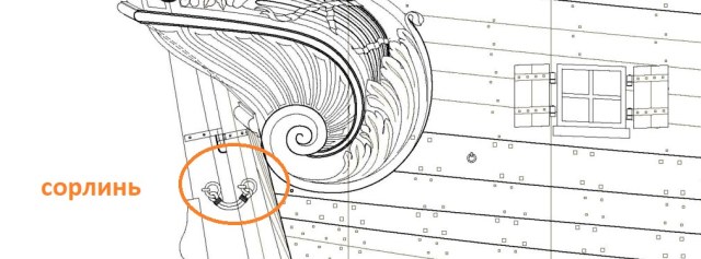 Но никогда не было обратного, то есть, был вариант "только шкентели руль-талей, сорлиней нет", и не было варианта "только сорлини, шкентелей руль-талей нет". Вот это и смутило на чертеже. Сорлинь, эта маленькая снасть в между рулём и штевнем, заменить руль-тали никак не могла.