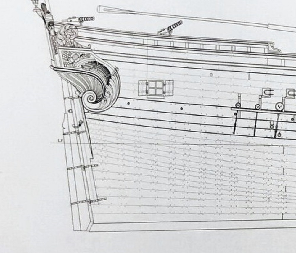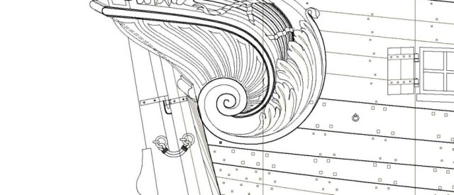 Вот и я о том же! То бишь, казалось бы не обязательно ставить волюту именно как на чертеже. Можно ставить любую, лишь бы подходила по параметрам страна/верфь/период/стиль... Ну да, понимаю: а что же спросят судьи...