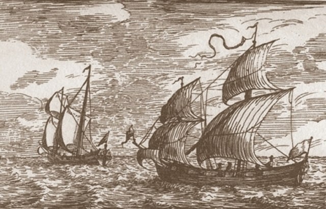 Исторические картины как раз всё объясняют и поясняют. Ларчик просто открывается: стаксели всё-таки не принадлежат штагам, они ходят по лееру, и поэтому никакие тали брасов на штагах им совершенно не мешают, а значит, стаксели совершенно стандартны и абсолютно предсказуемы, приятны и удобны в обслуживании, как это и бывает обычно на море, которое ошибок, как известно, не прощает...