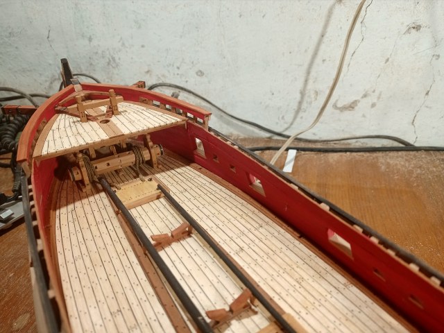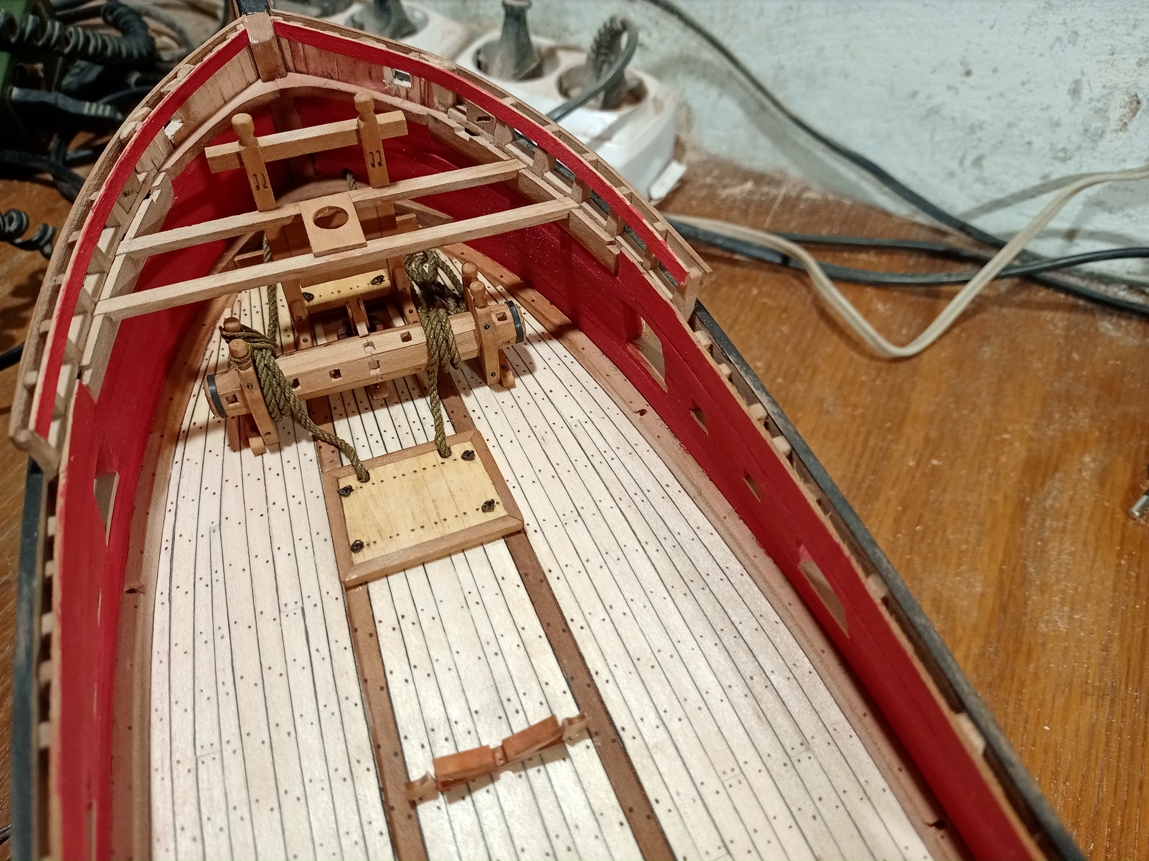 Эту модель хочу сделать немного светлее предыдущих, поэкспериментировать с древесиной. Поэтому палубу сделал из осины, борта из ольхи. Под маслом ольха потемнеет, как палуба на тартане.