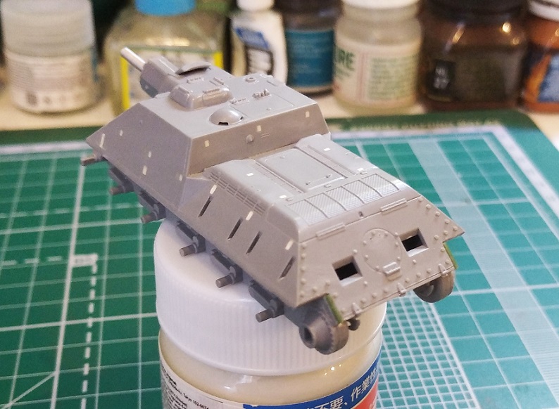 Зашпаклевать и доработать бронировку орудийных механизмов, установть точеный ствол.