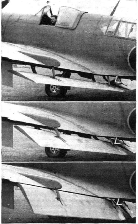 Озаботился в данный момент положением закрылков. Из описаний следует, что они могли находиться в трех положениях: для взлета, для посадки, для маневра. Схем расположения не нашел. Из фото можно понять, что взлетное и посадочное положение отличались разными углами наклона (взлетное - угол меньше), а в положении для маневра закрылки стояли горизонтально ниже крыла, образуя своего рода бипланную конструкцию.