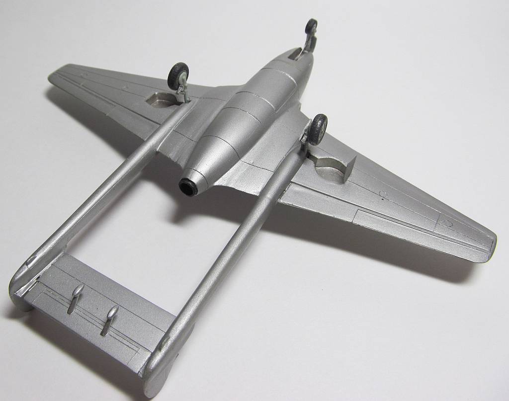 Собирал такой когда-то давно. Когда впервые увидел - весьма удивился, реактивный самолет и при этом двухбалочный. Делали сей кит в Баку. В самом начале производства он продавался в коробках. И даже название было указано.