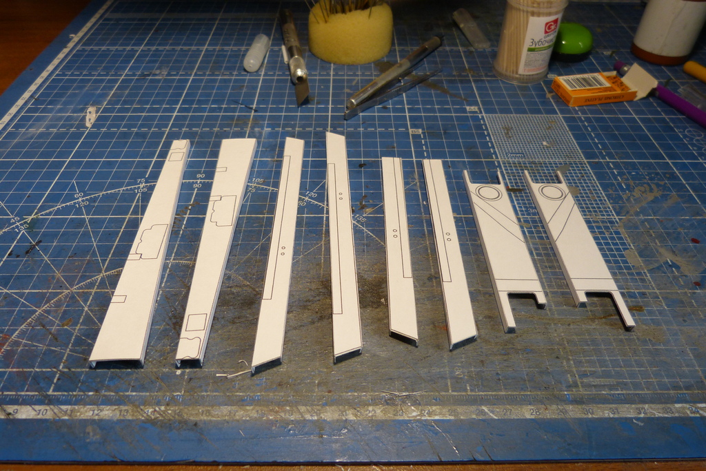2.Бумагу использую чертежный ватман+офисная бумага.Все толщины стараюсь набирать без картона (картон использую только в каркасах кораблей и рамных листах паровозов).Пивной картон вообще не признаю.Все конструкции очень жесткие