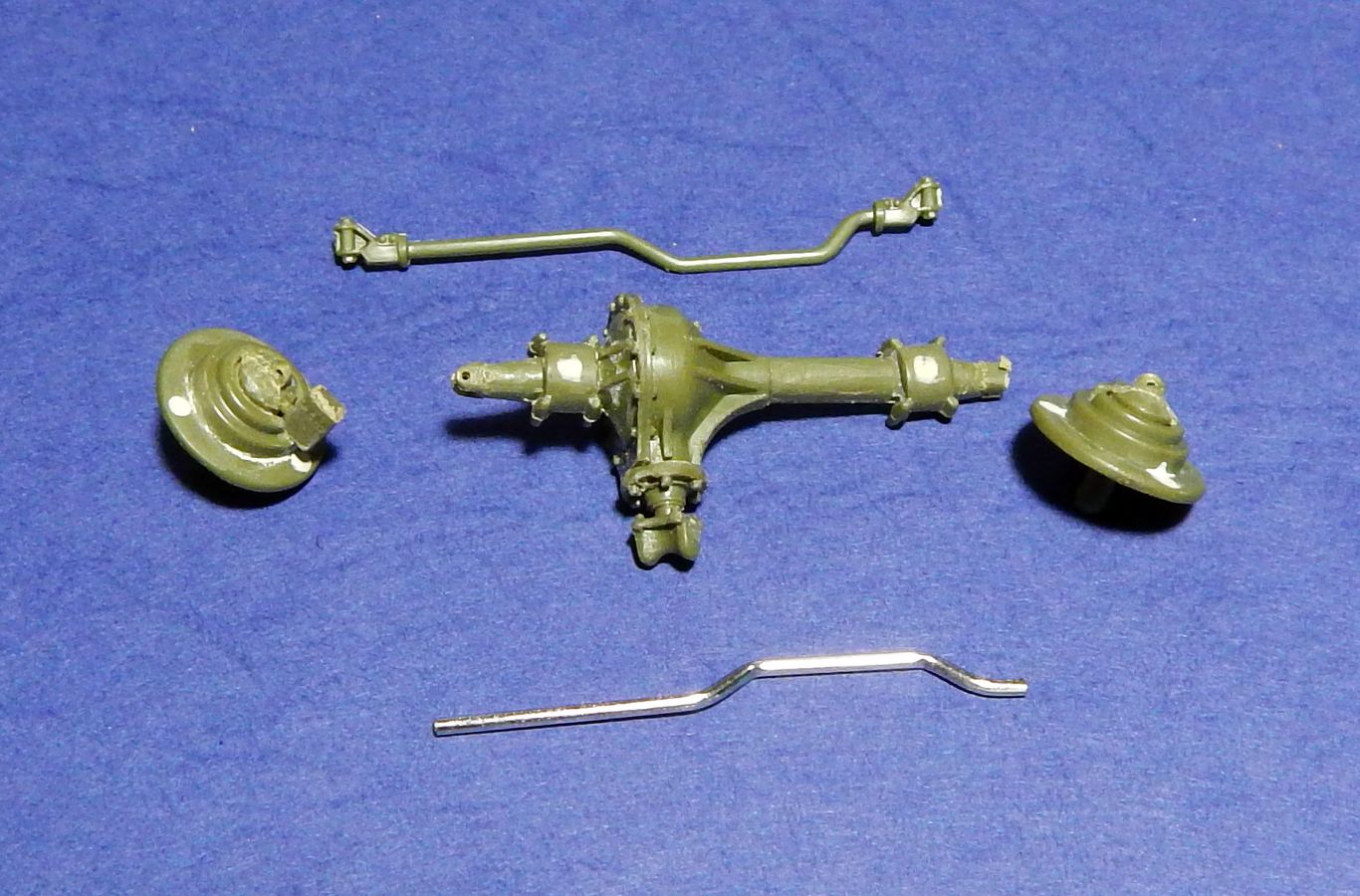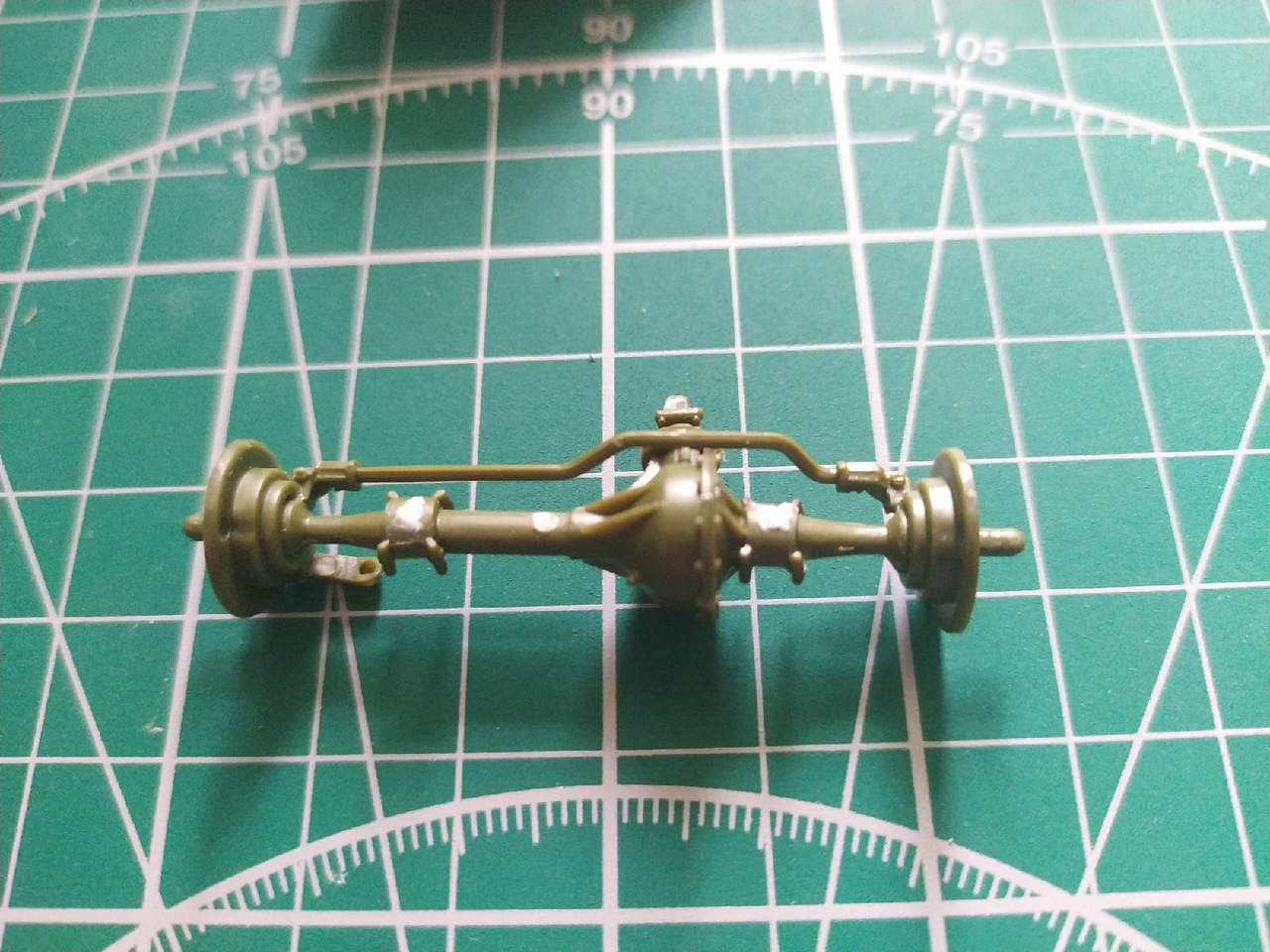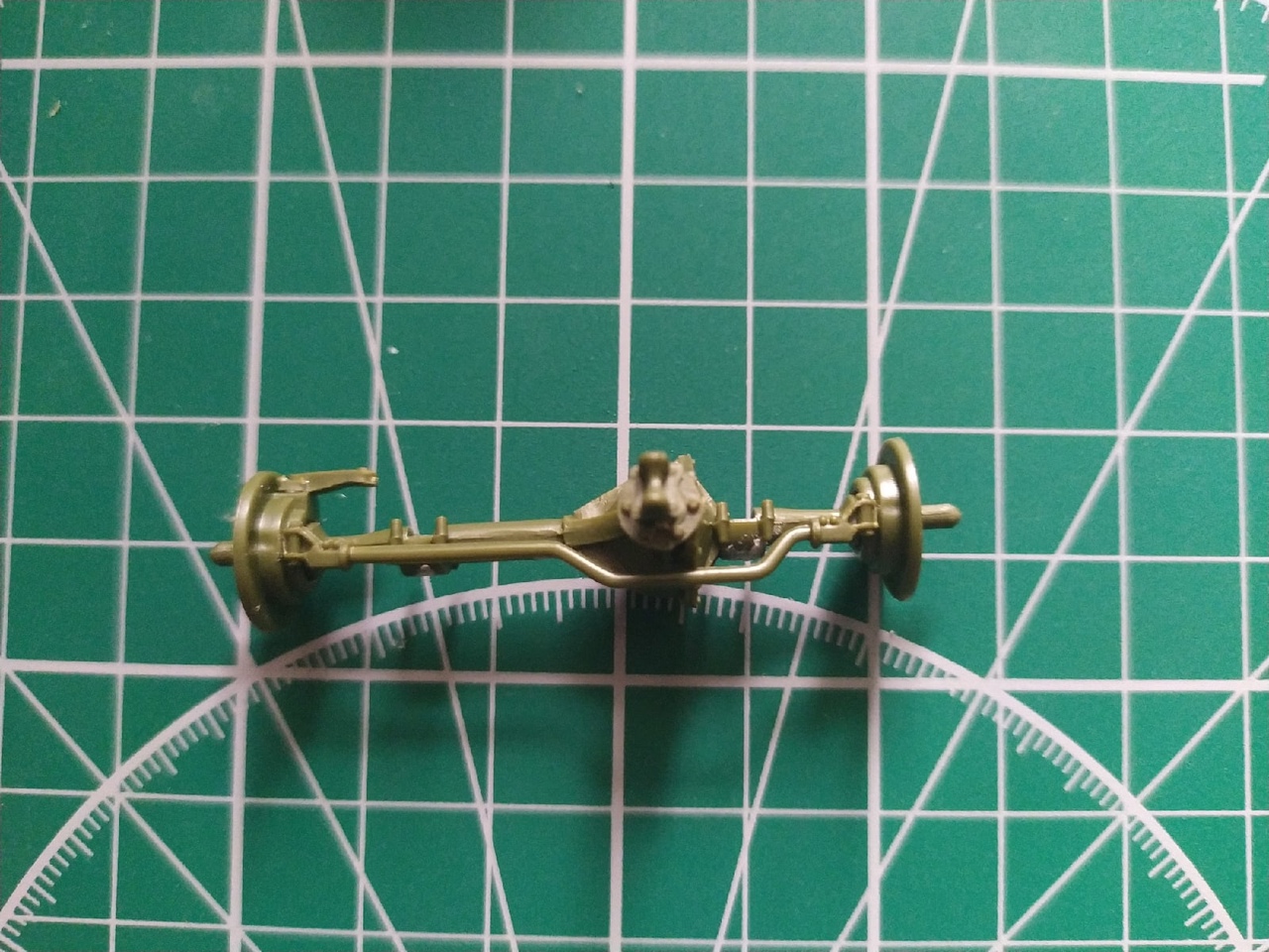 День 3. 07.06.2021. Собраны оба моста (толкатели на них подверглись нашествию шпаклевки), предпринята попытка просверлить глушитель. При примерке переднего моста выявил необходимость подшлифовать рессоры, что и было сделано.