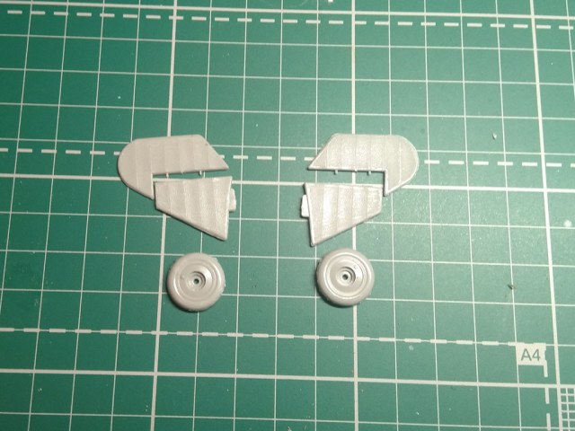 Самая проблемная зона - оперение. По-видимому, из-за удлиненного фюзеляжа, чтобы уложить модель в габариты, уменьшили оперение. К сожалению, ни по габаритам, ни по абрису не укладывается в чертеж. Похоже, придется полностью переделывать. А вот колеса легли хорошо, буду использовать из набора.