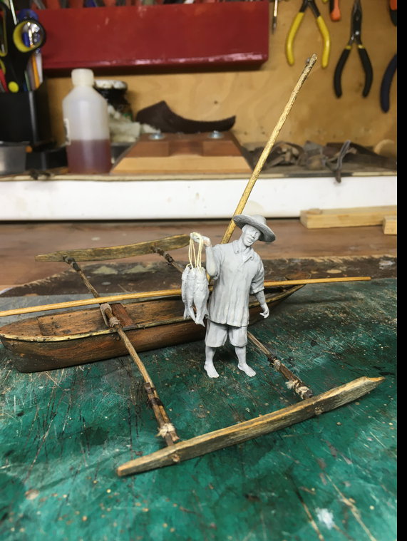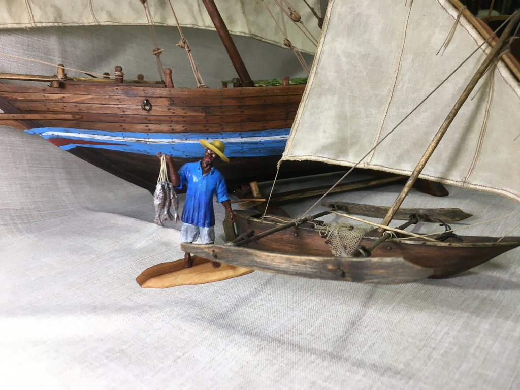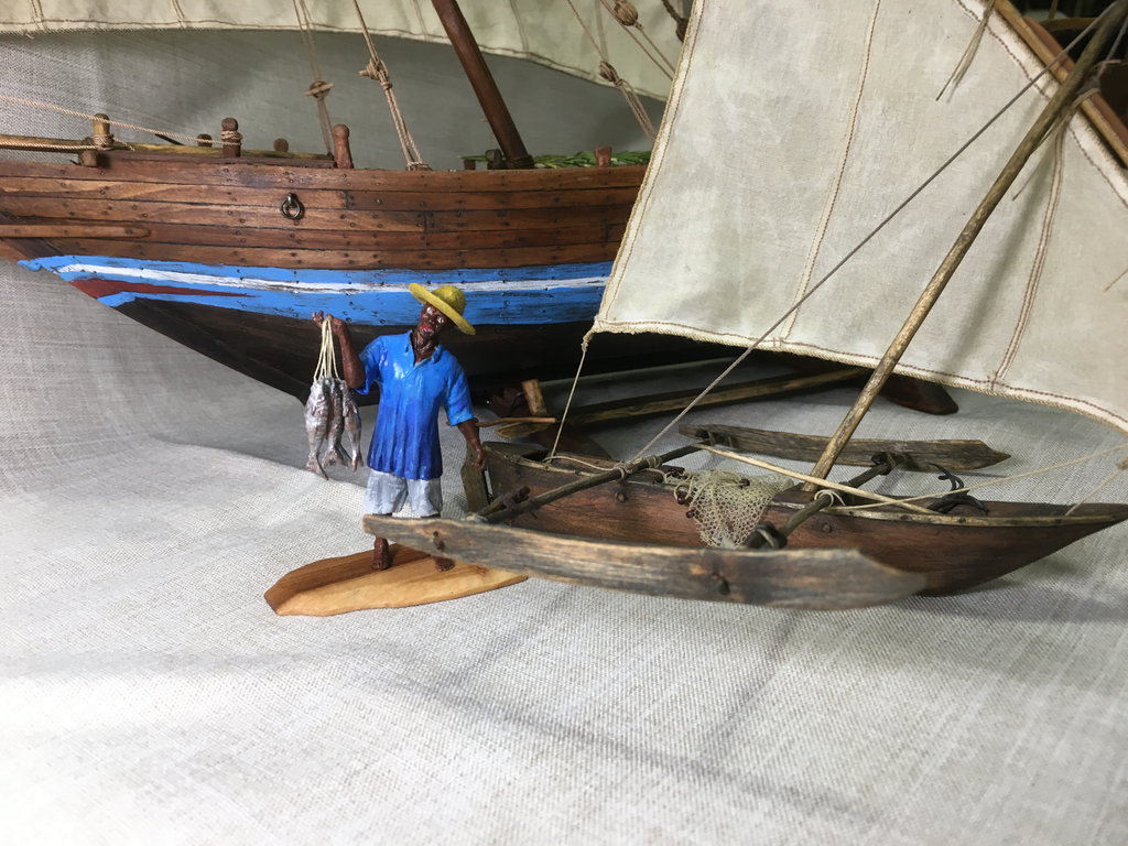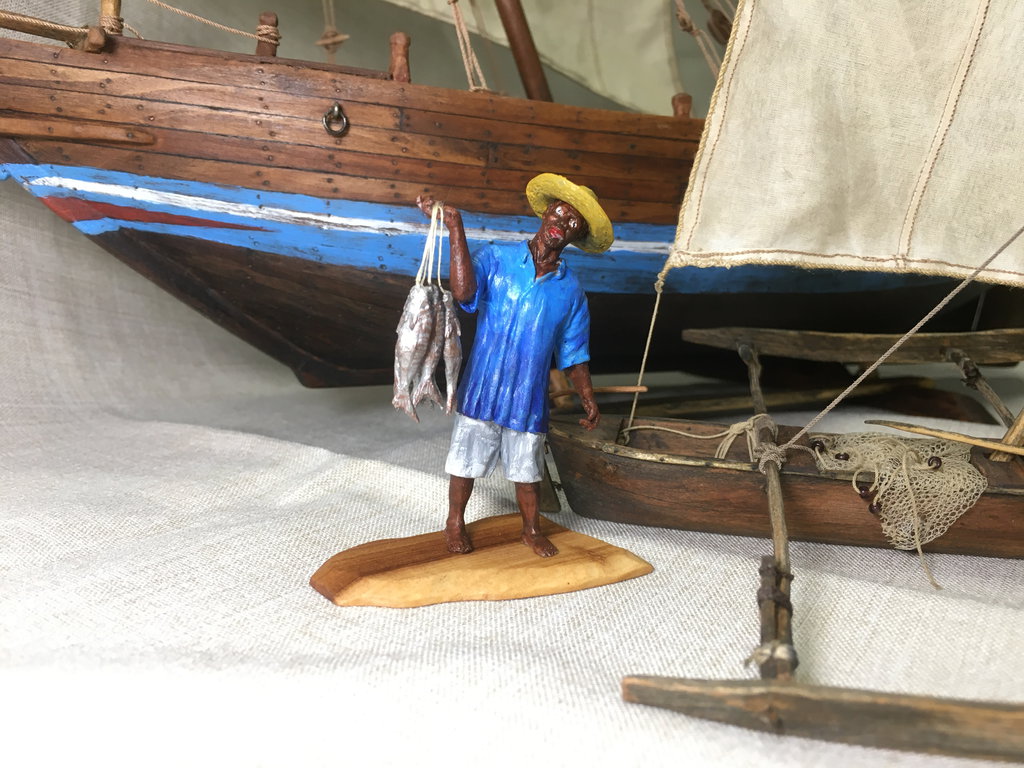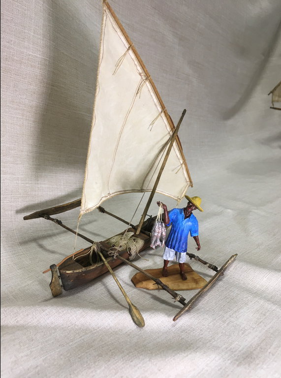 Дополнение к Котиа Мадагаскарской рыбацкая лодка с рыбаком. Масштаб 1:30, материал яблоня