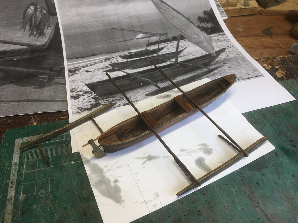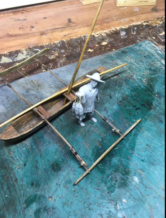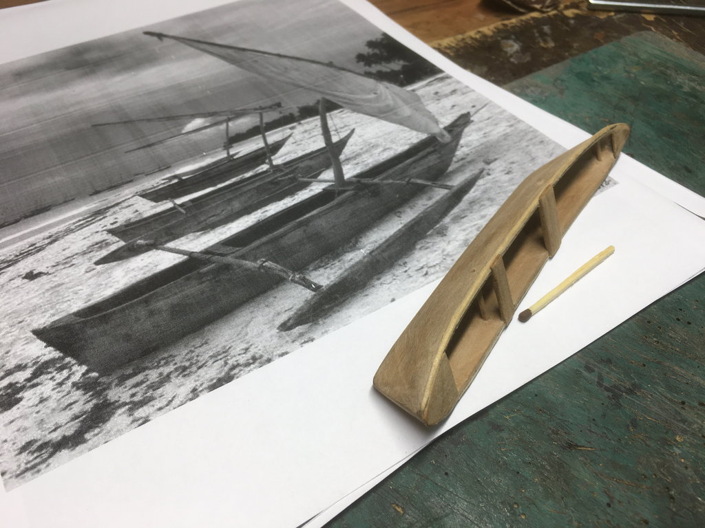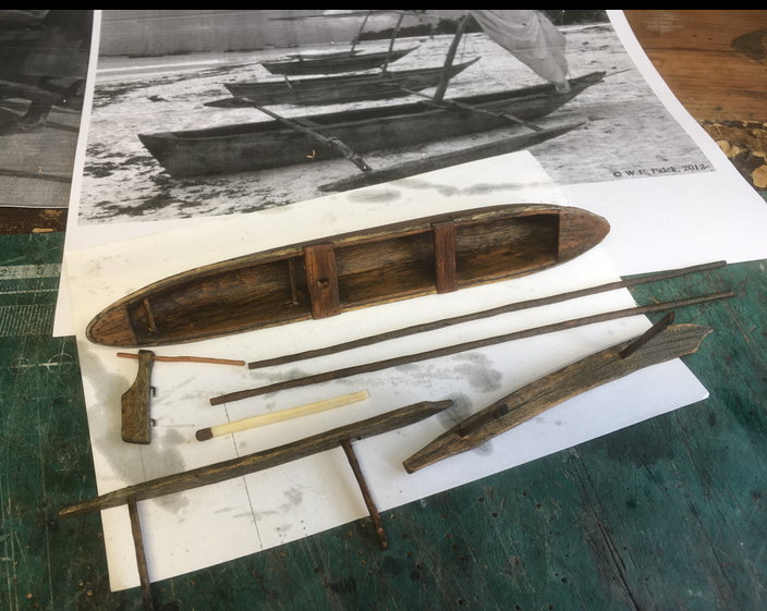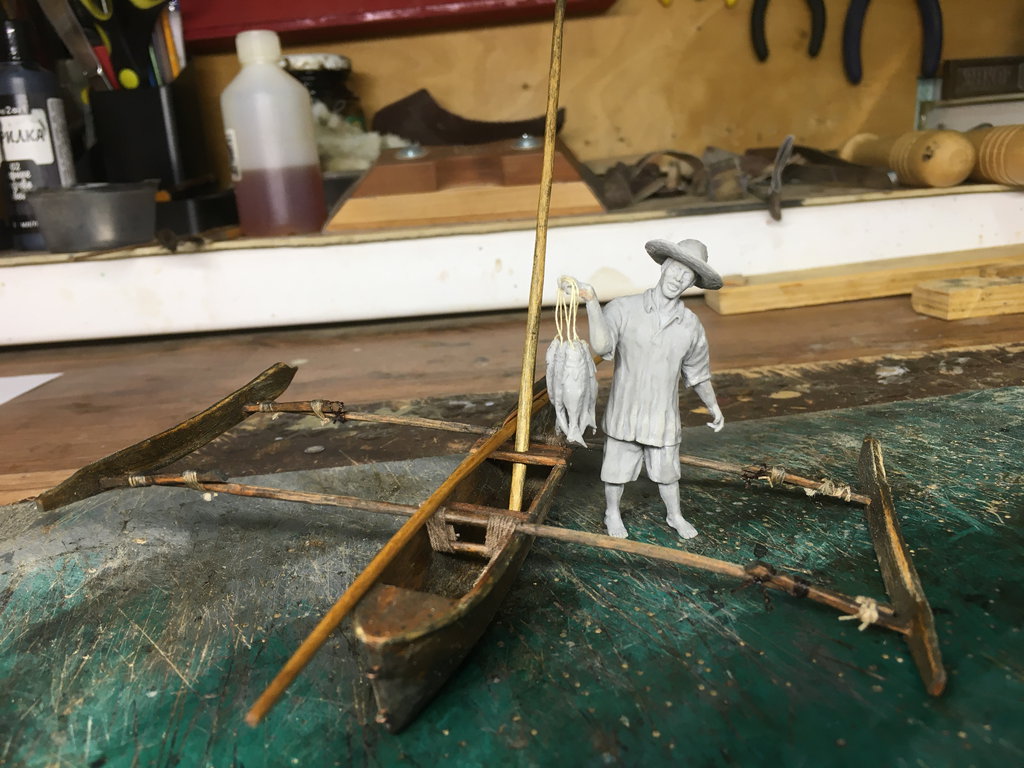 Дополнение к Котиа Мадагаскарской рыбацкая лодка с рыбаком. Масштаб 1:30, материал яблоня