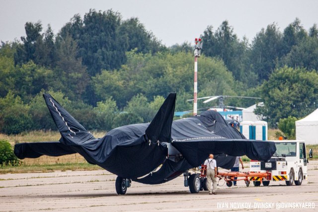 Как сообщают споттеры, 15 июля 2021 года на аэродром АО «Летно-исследовательский институт имени М.М. Громова» в подмосковном Жуковском был доставлен закутанный в черный брезент полноразмерный макет (или все-таки первый опытно-экспериментальный образец?) российского перспективного легкого однодвигательного истребителя пятого поколения, разрабатываемого ПАО «Компания «Сухой» (в составе АО «Объединенная авиастроительная корпорация»), по, предположительно, программе ЛТС («Легкий тактический самолет»).