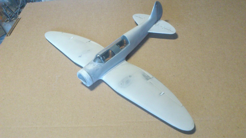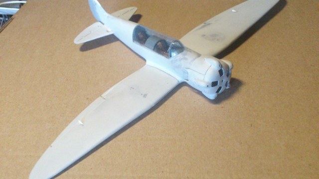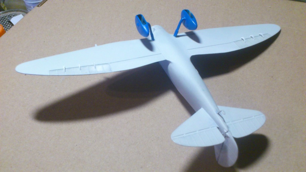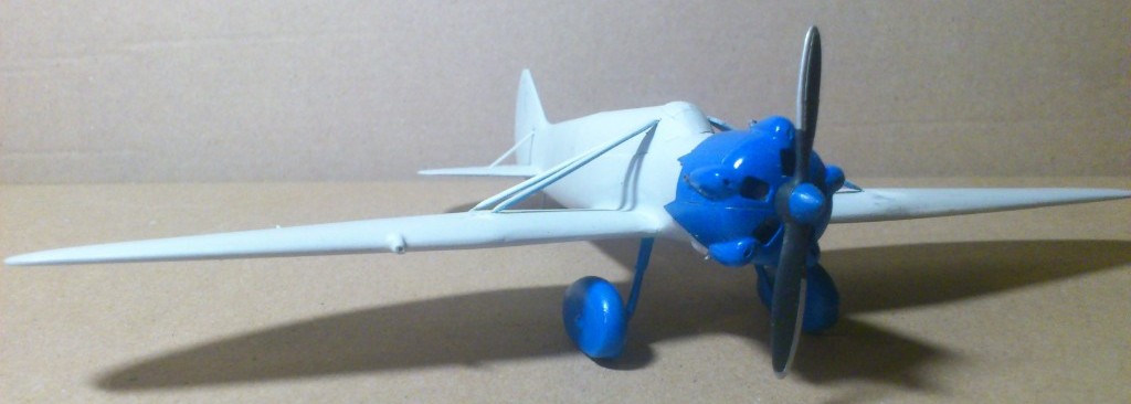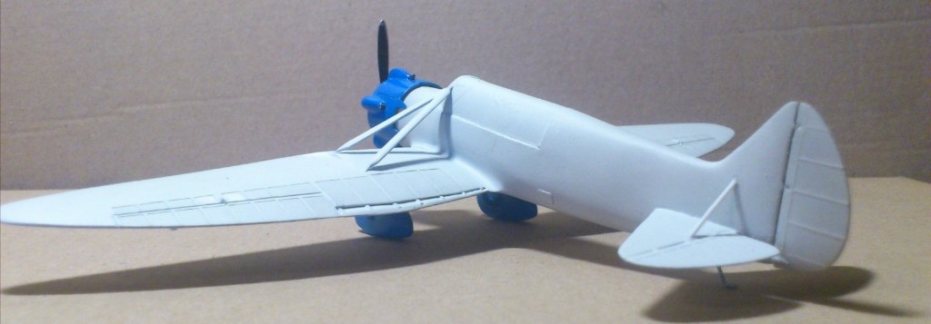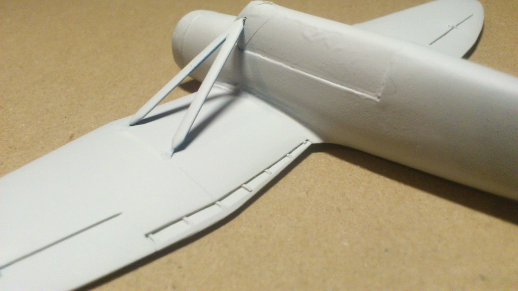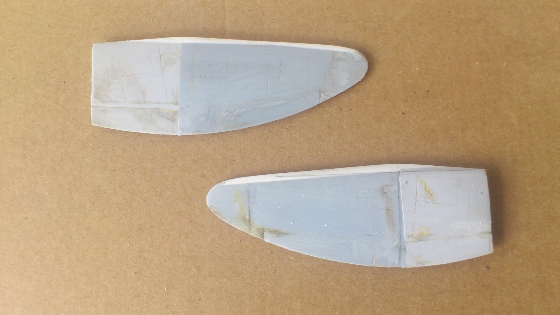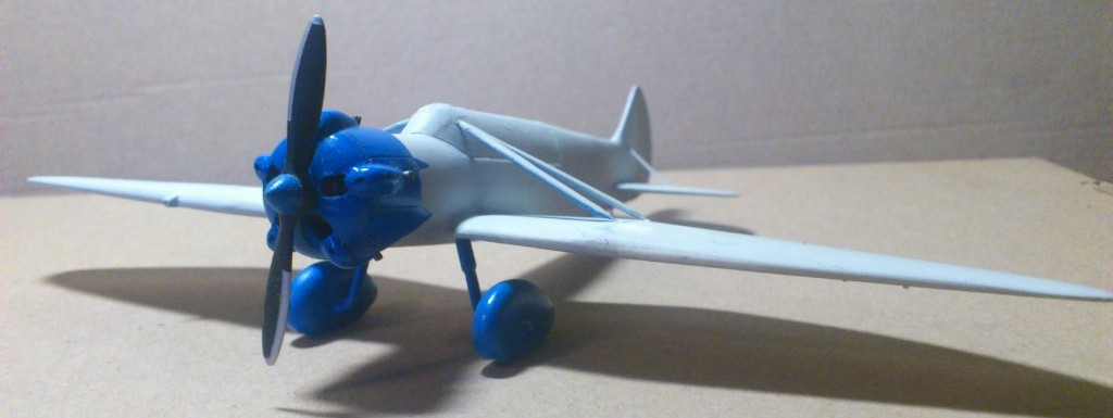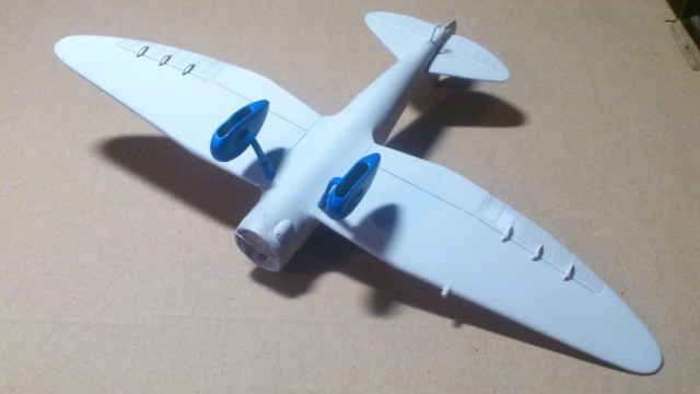 Модель была полностью подготовлена к покраске, но покрутив её решил немного доработать что вылилось в полную замену консолей. На этот раз обошелся без донорал, использовал пластик 2мм. А вот винтомоторная группа готова. Движок от У-2 ( головки цилиндров срезал что бы влез в капот ), втулка и кок винта из бомбы от СБ, лопасти доработал от ишачка.
