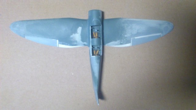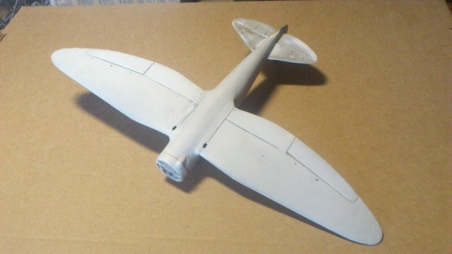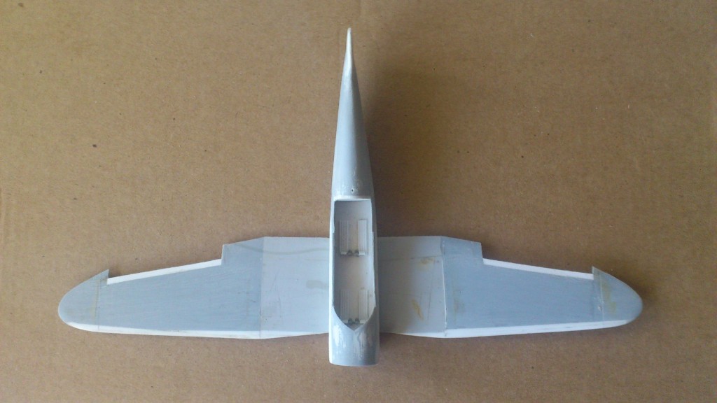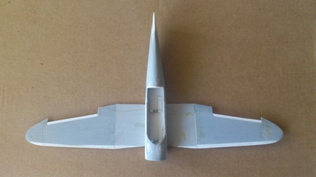 По модели: вырезал ниши под крыло и элероны, обрезал задние кромки и собрал. Только на фото заметил что с хвостовой частью накосячил, буду исправлять.