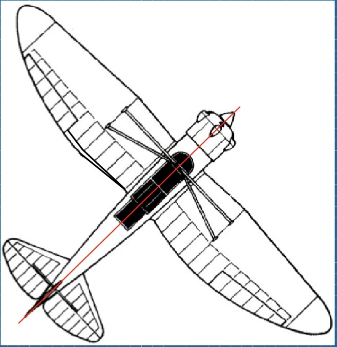 На схеме отсутствует верхний "клык", но больше меня заинтересовала щель на задней кромке крыла и центроплана. После некоторых размышлений пришёл к выводу что это щитки Шренка выступают за заднюю кромку крыла. Обратил так же внимание что задняя кромка центроплана была прямая, а не элипсная как на схеме. Накалякал, вот что получилось: