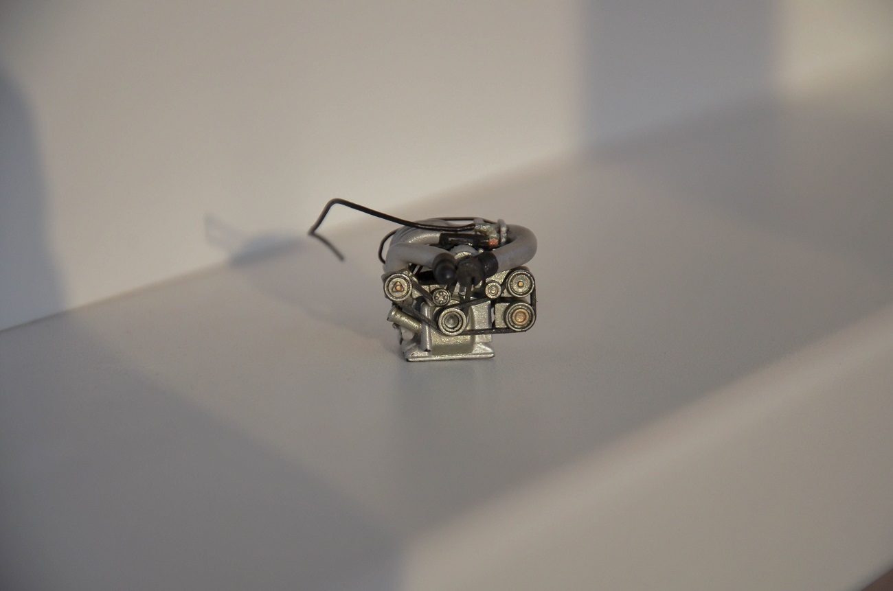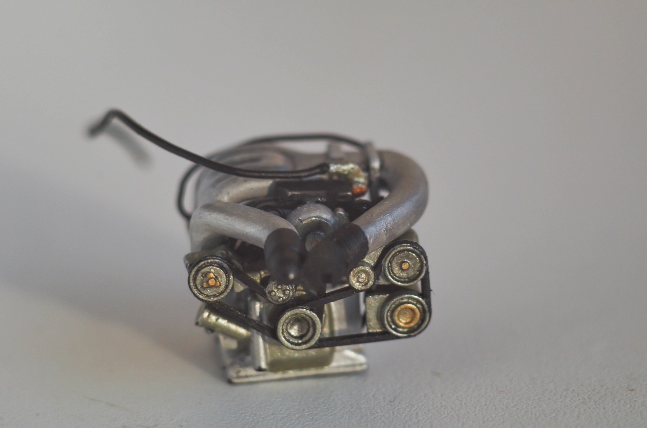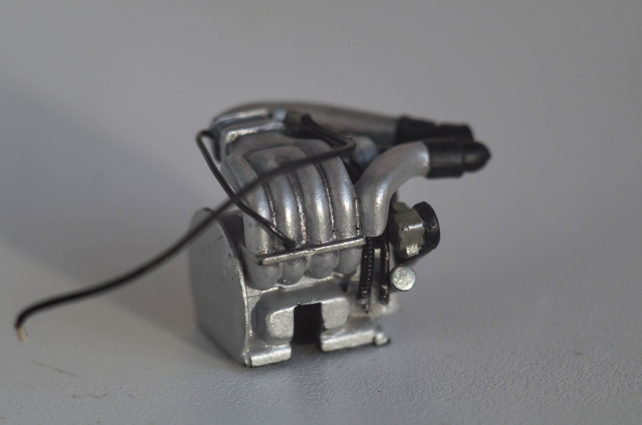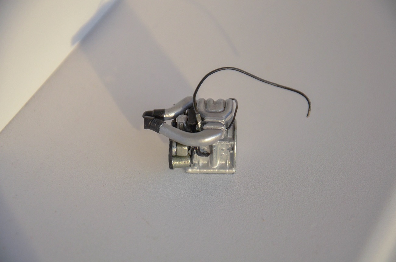 На днях поработал над движком, накинул патрубков и немного проводки, в ход пошли обычная медная проволока, гитарная струна и тянутый литник, все это дело было задуто в Tamiya XF-01 Flat Black, ну а сам движок... о его покраске писал ранее
