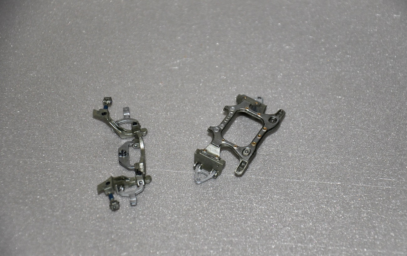 Следом (так как расчехлил аер), в Tamiya XF-16 Flat Aluminum задул передний и задние детали с подрамниками и рычагами, звездовской N07 сталью выделил верхнюю и нижнюю части подрамников, задние тяги на рычаги подкрасил с помощью Tamiya X-04 Blue. Отверстия на переднем подрамнике выштамповки подкрасил "Золото" N03 от Звезды, я автор, я так вижу