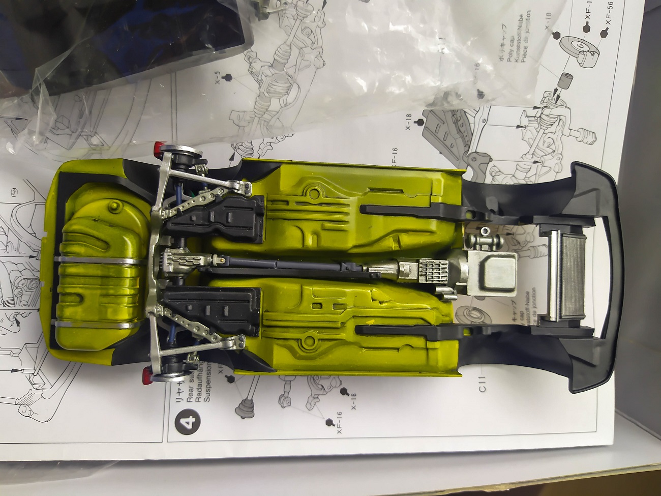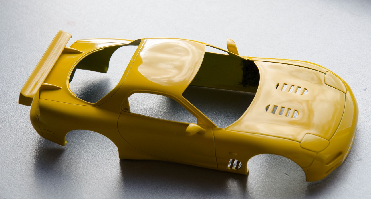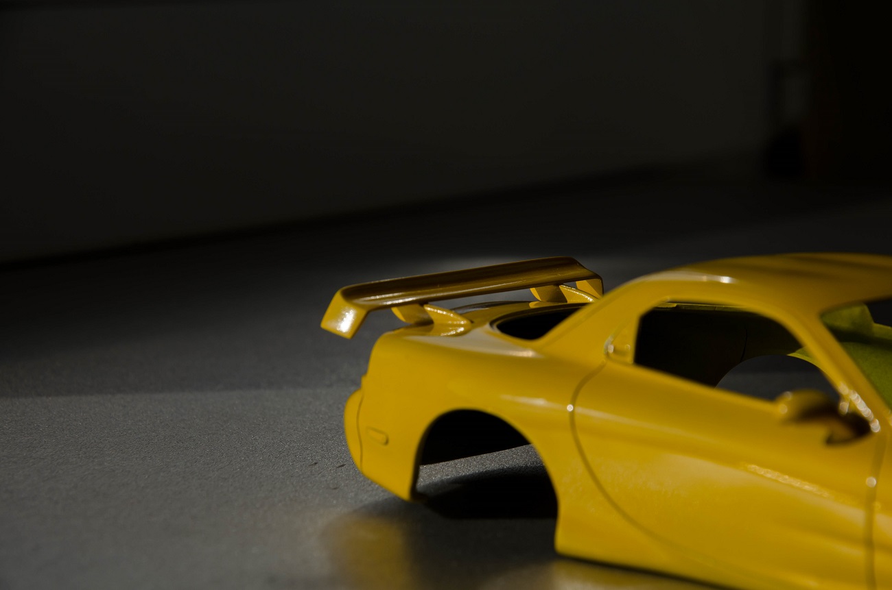 После данных манипуляций, я решал дилемму с будущим цветом кузова... все что-то не так было... нужен был яркий, привлекательный и не навязчивый оттенок, красный слишком банален и по моему субъективному мнению вообще не идет RX-7. Решил использовать желтый... поехал в модельный магазин и прикупил Tamiya X-08 Lemon Yellow, ну или впростонародье "Канарейкина задница"