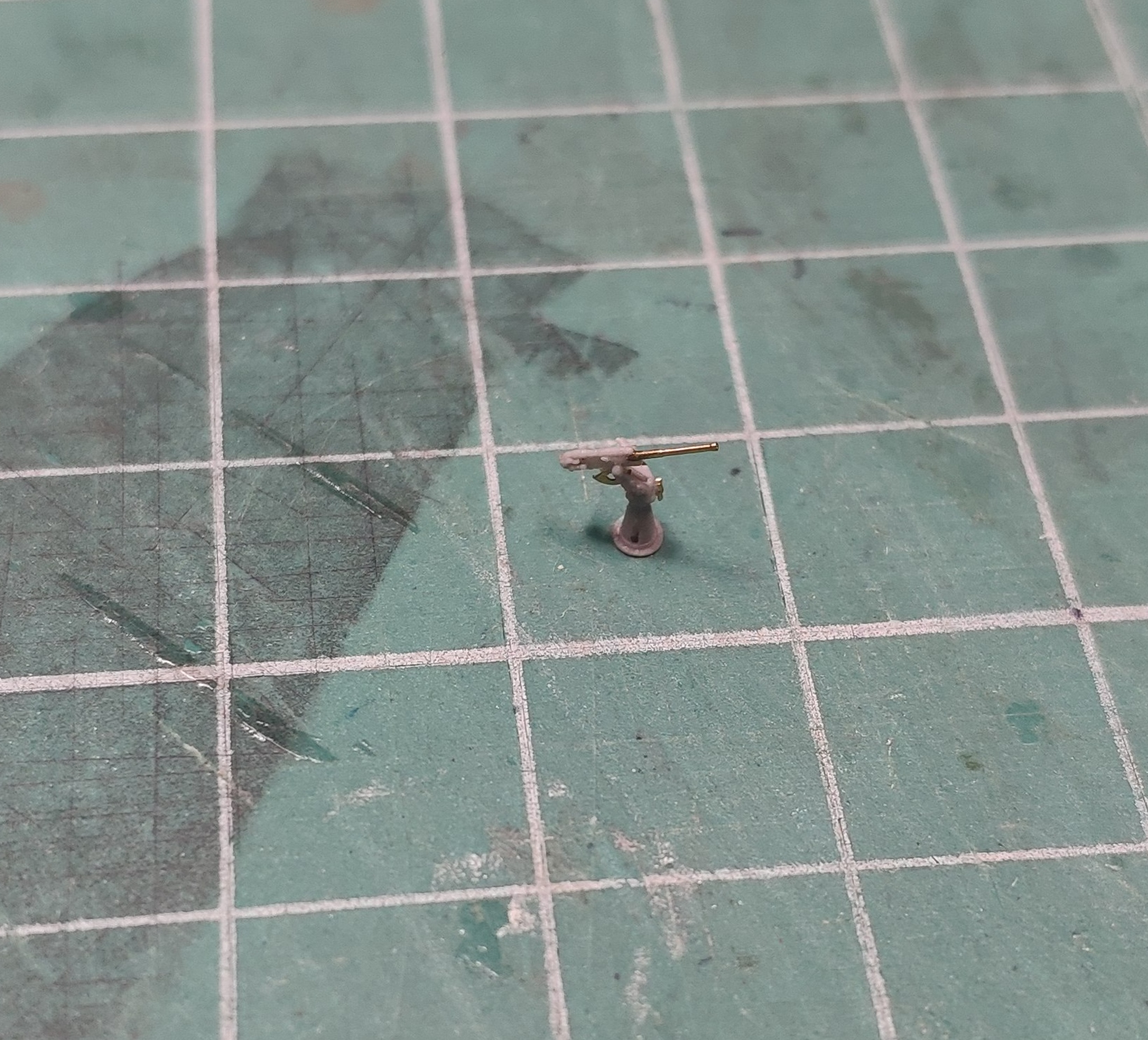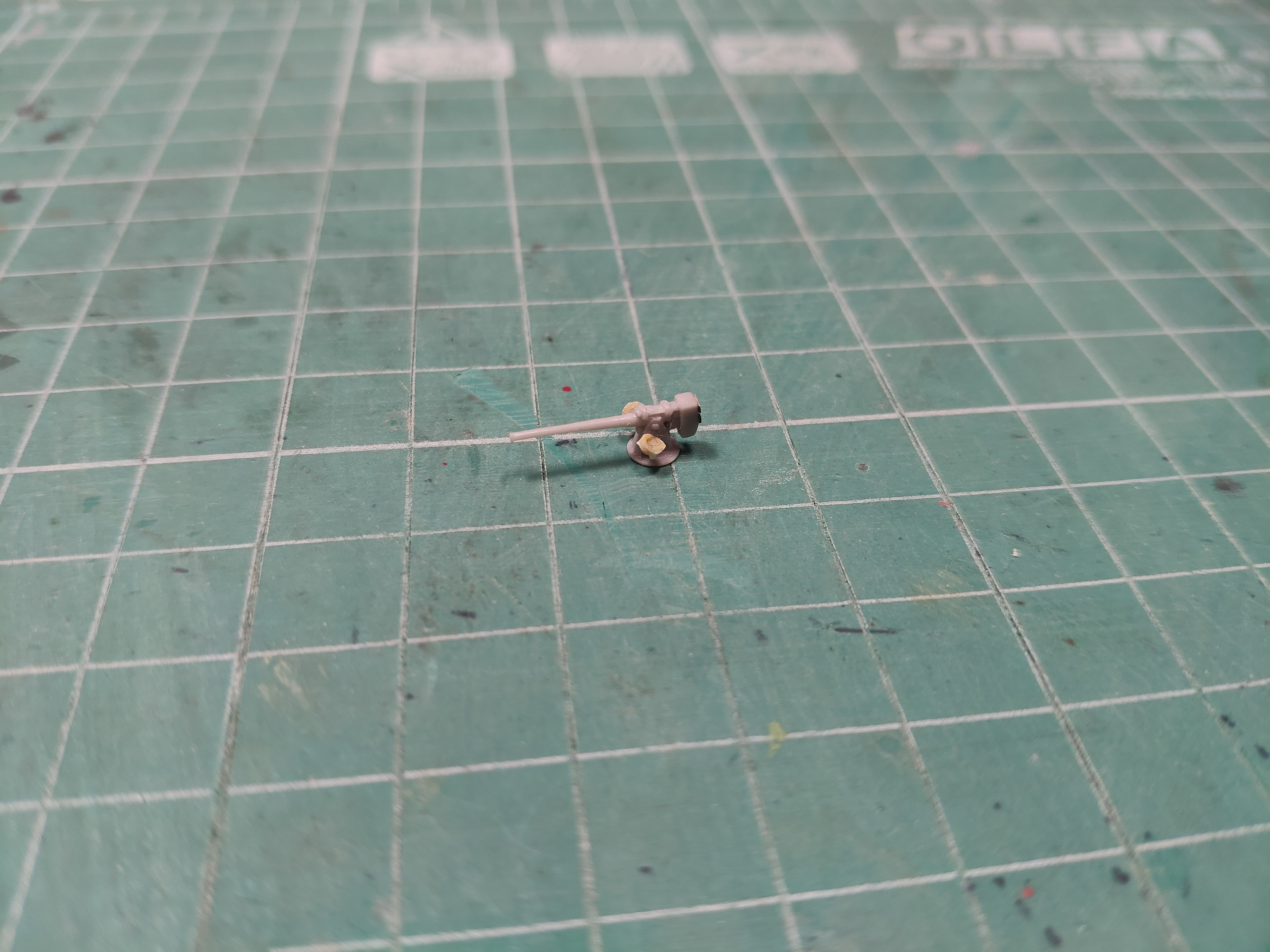 Рубка - собрана, сделал из проволоки 0,25 мм поручни, переделал рубочные двери (убрал две двери с правого борта и сделал симметрично с левого и правого как на фото в сообщении №2), сделал мачты под натяжные антенны, поставил ограждение орудия и сделал флаг шток.