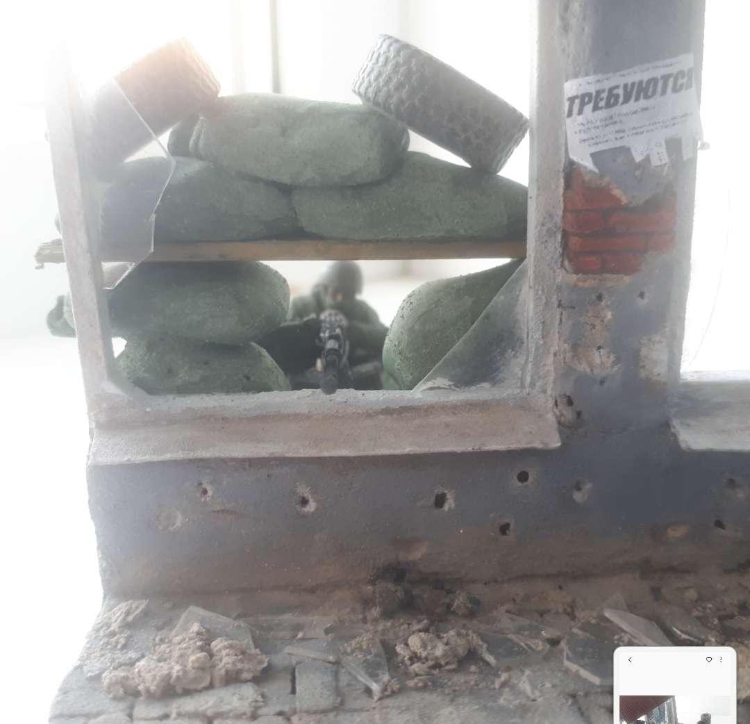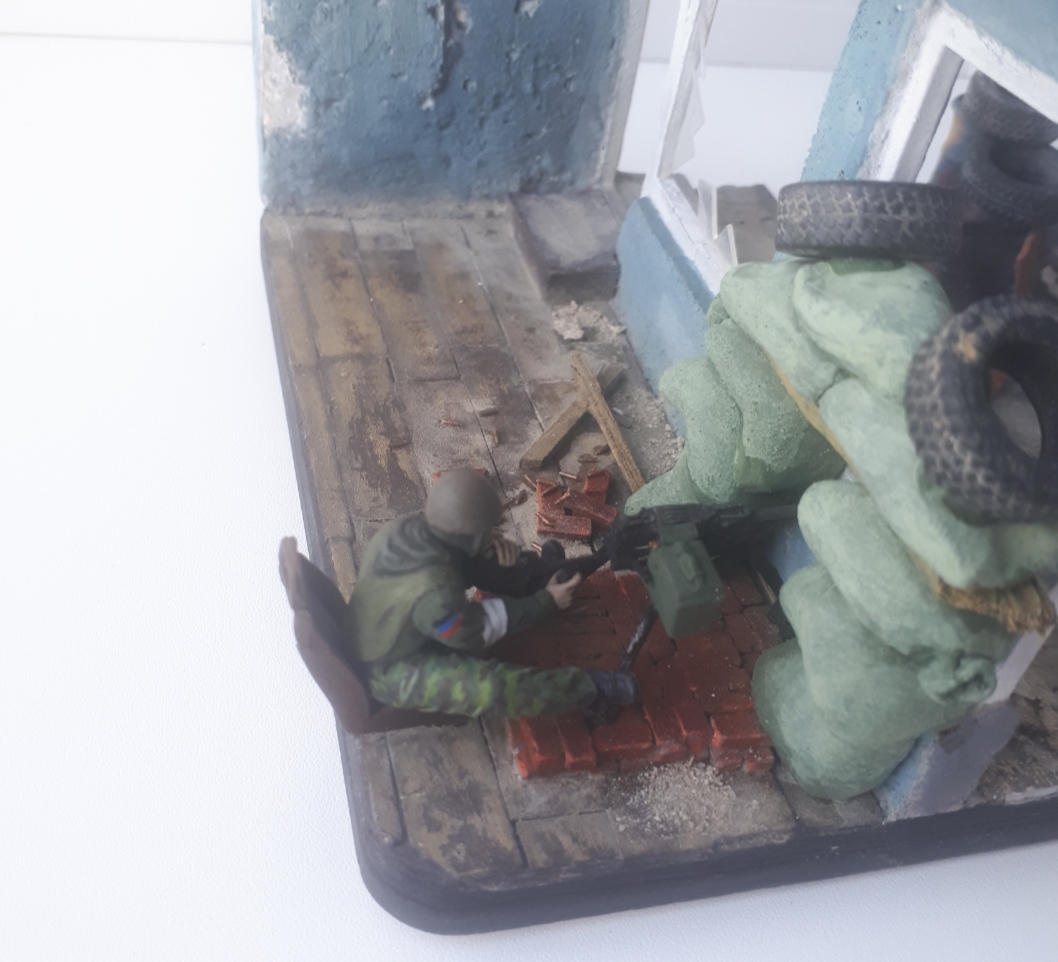 Решил, что сюжет будет представлять из себя оборону небольшого магазина, на окраине, предположим, Донецка. Как раз от набора спецназа в Афганистане, остался утес и 80% пулеметчика. Следующий большой этап - сбор конструкции здания и его покрас.