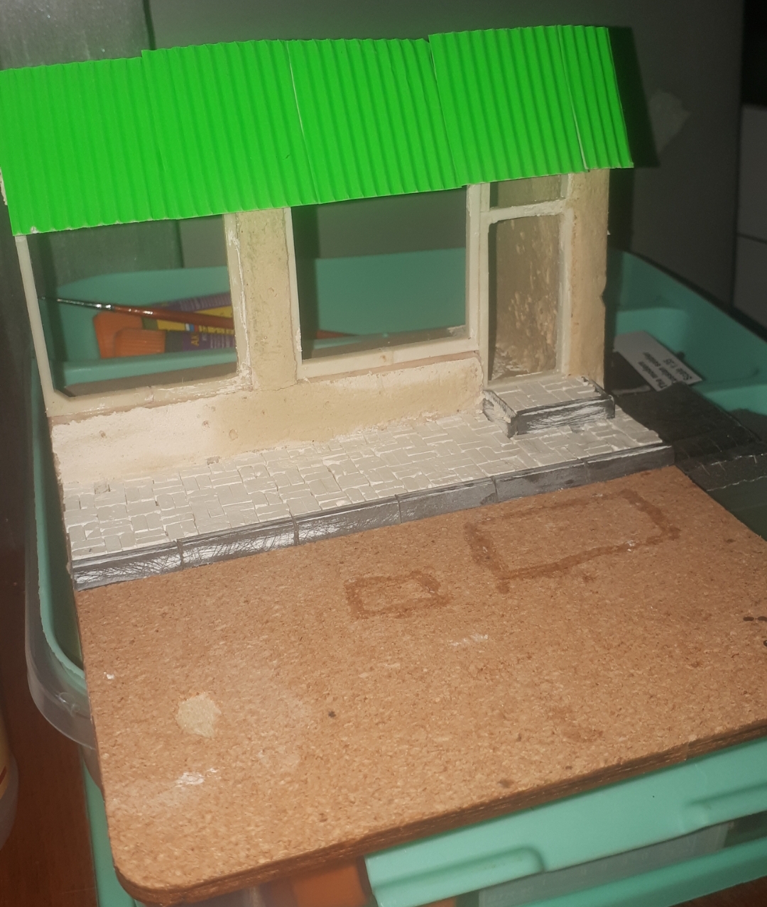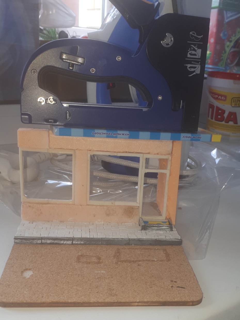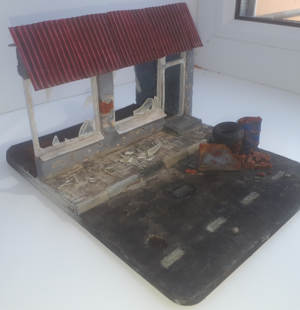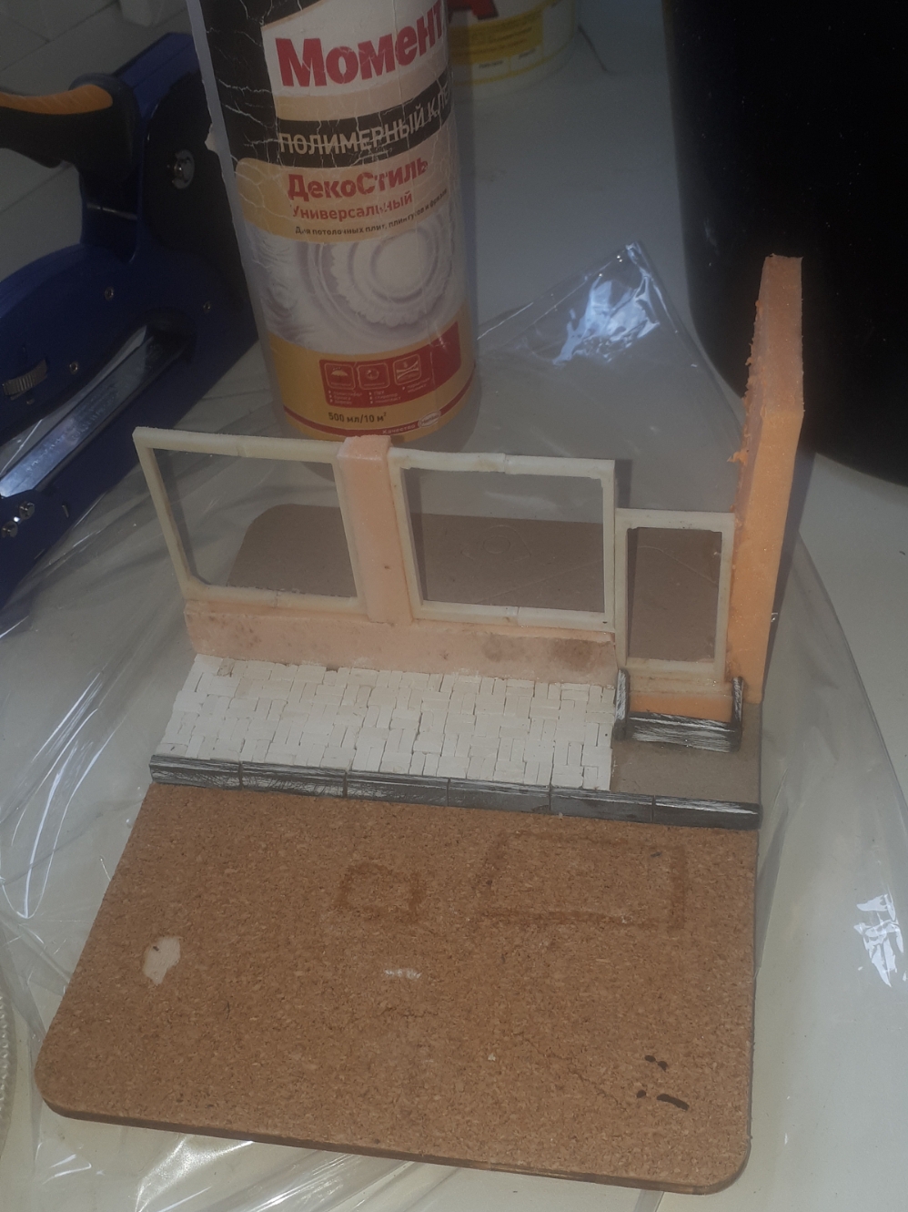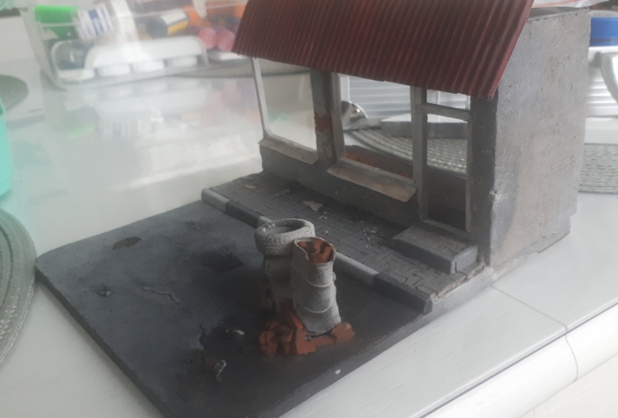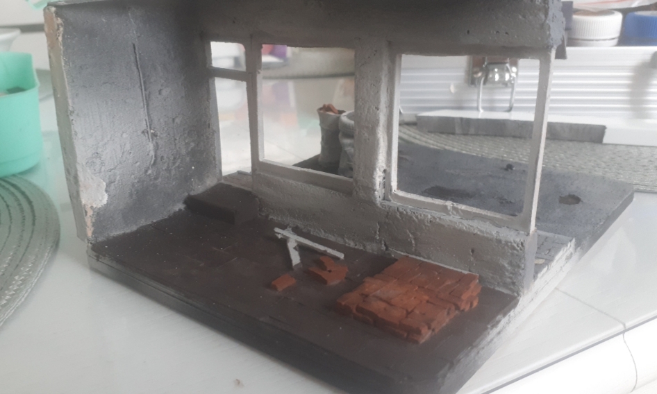После переезда не фоткал промежуточные этапы. До этого гуглил фото рахбитых зданий в донецке. Выкладываю последний вариант. Сегодня распаковал краски и саму диораму и продолжаю, пока дети спят)))
